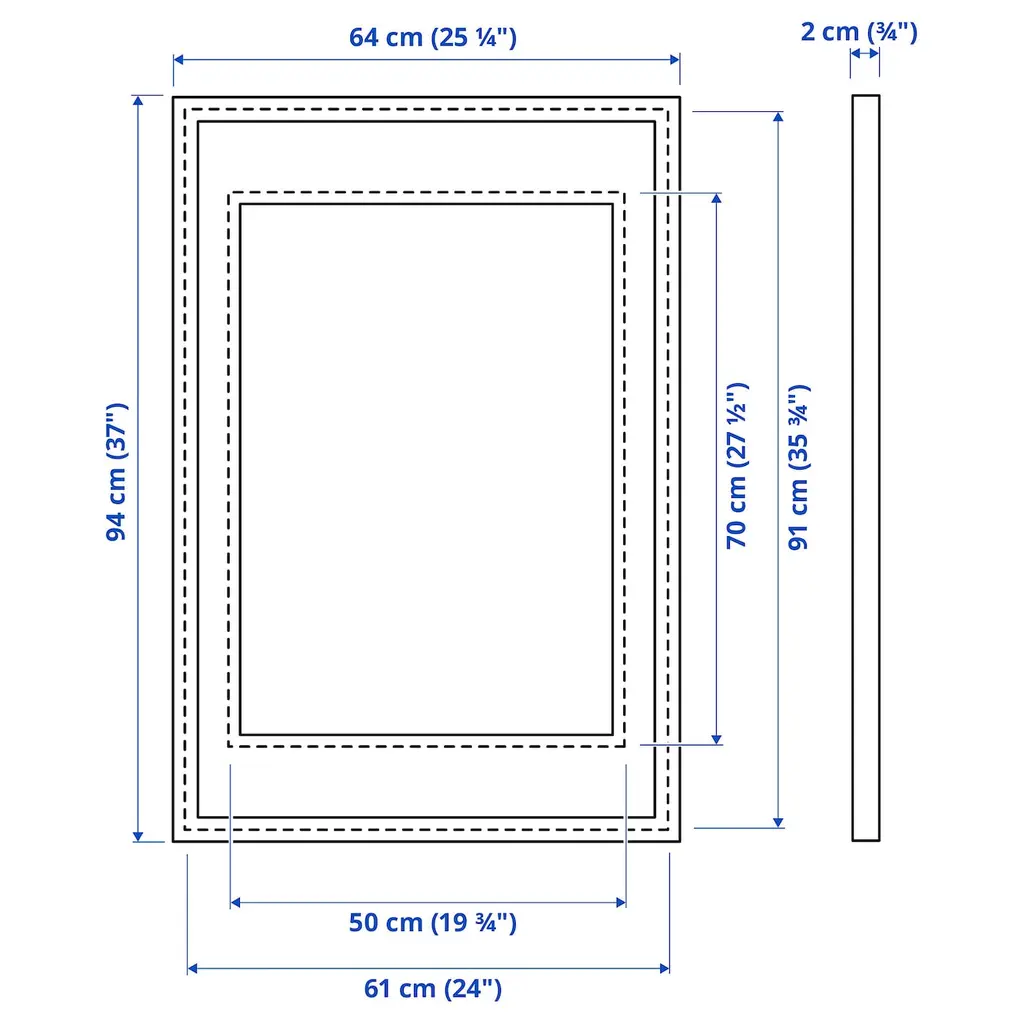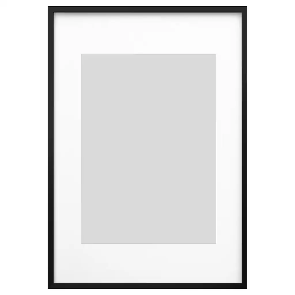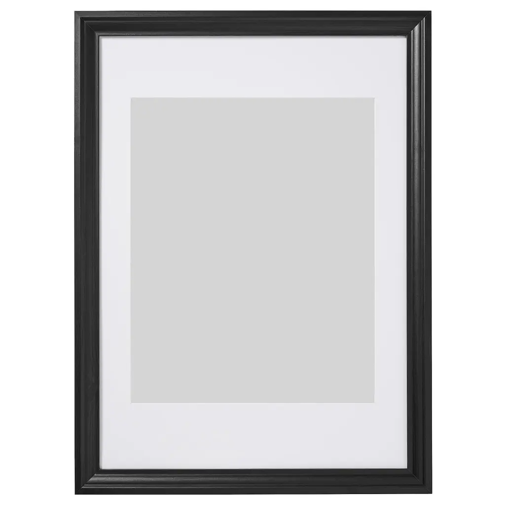 KNOPPÄNG Frame - black 24x35 ¾ ". Can be used hanging or standing to fit in the space available. Can also be used without the mat for a larger picture. The mat is acid-free and will not discolor the picture. Front protection in plastic makes the frame safer to use. Mat included.