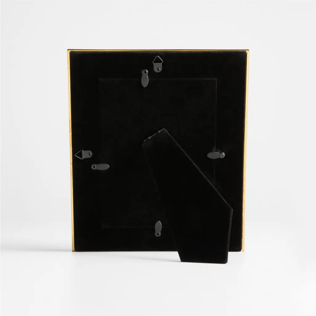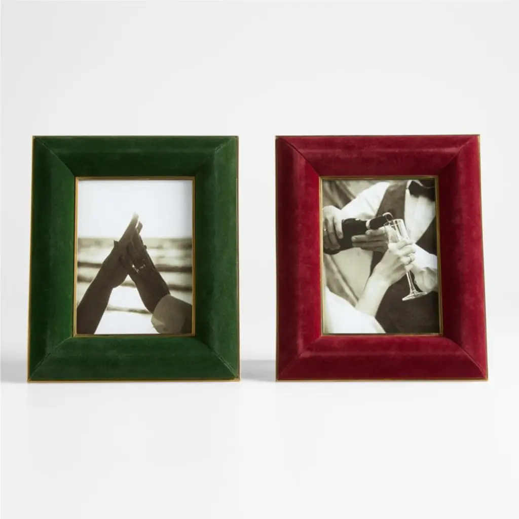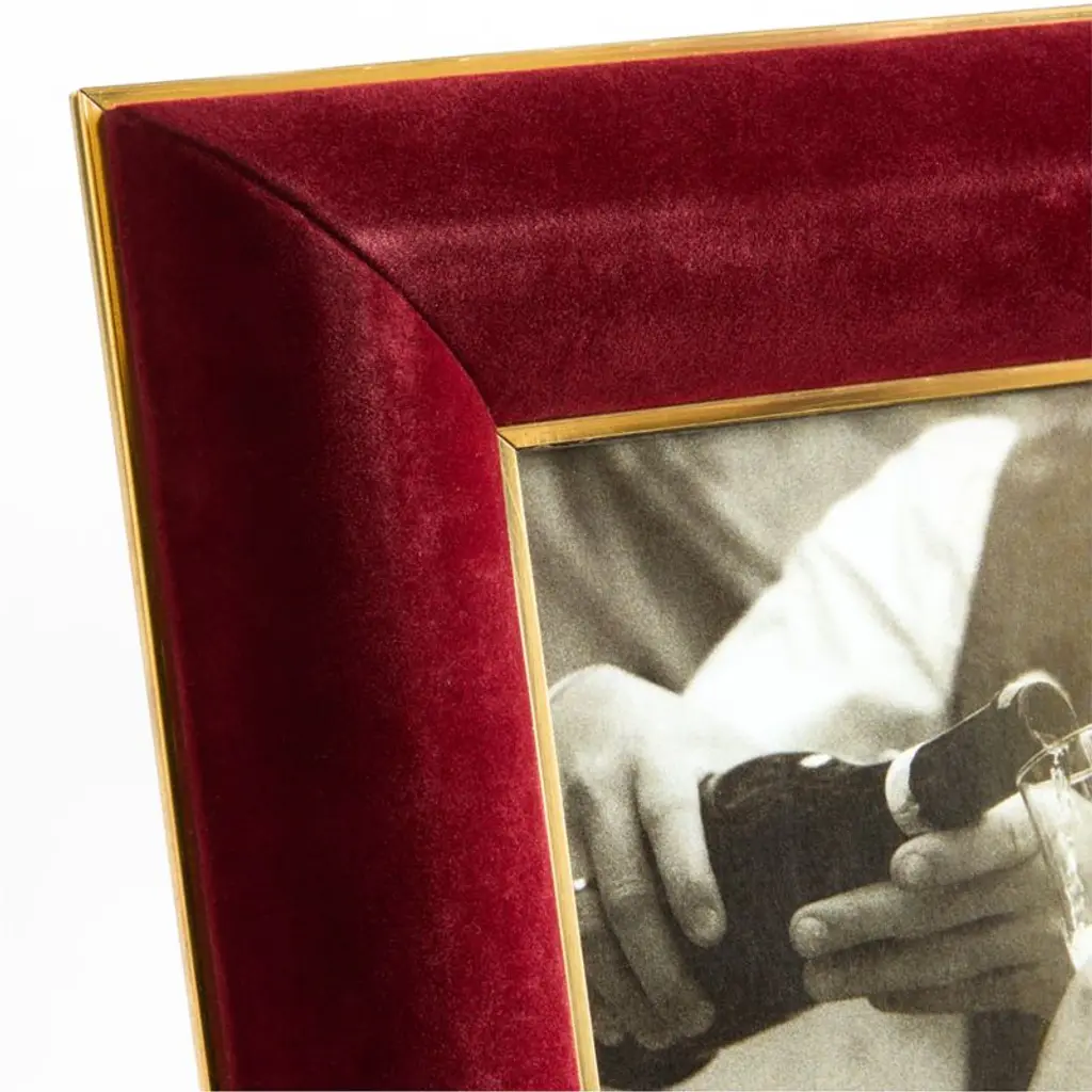 Give treasured photos the attention they deserve with our luxe Langham picture frame. Covered in burgundy velvet, the rounded frame looks plush and dimensional. Narrow gold trim around the edges and interior rim adds attention-grabbing accents. Hang on the wall or use the easel back for a tabletop display.