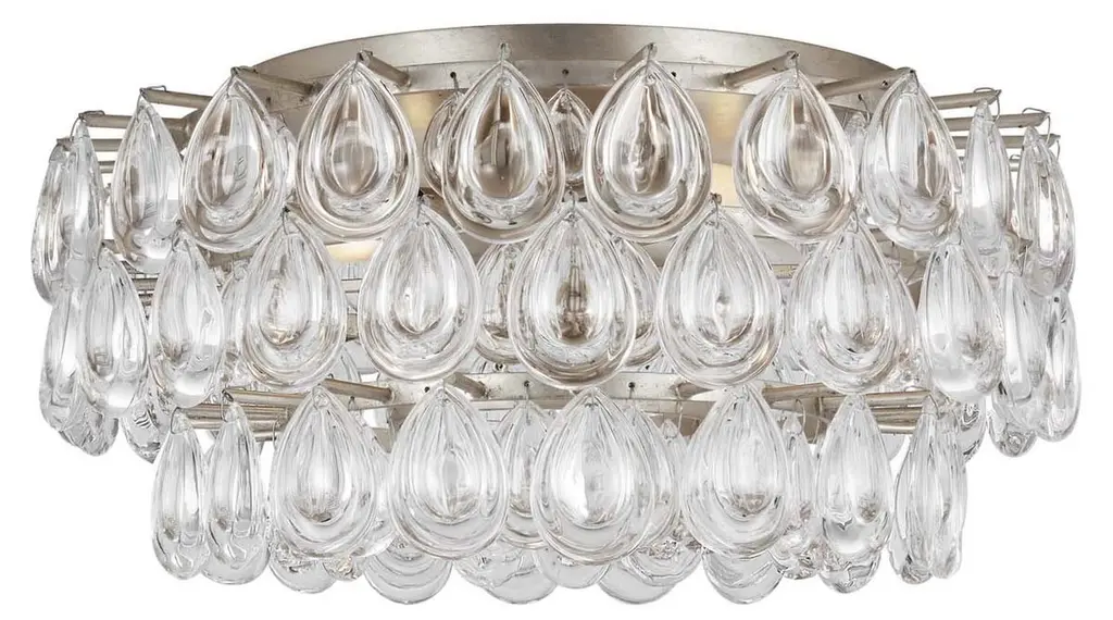 Draped in tiers of teardrop crystals with a burnished silver-leaf frame, this sleek flush mount dresses any space with drama and refinement. Hardwired.AERIN is a global luxury lifestyle brand inspired by the signature style of its founder, Aerin Lauder. Based on the premise that living beautifully should be effortless, the brand develops curated collections in the worlds of beauty, fashion accessories, and home decor. Classic but with a modern point of view, every piece is created to make life more beautiful, with a sense of ease and refinement.
