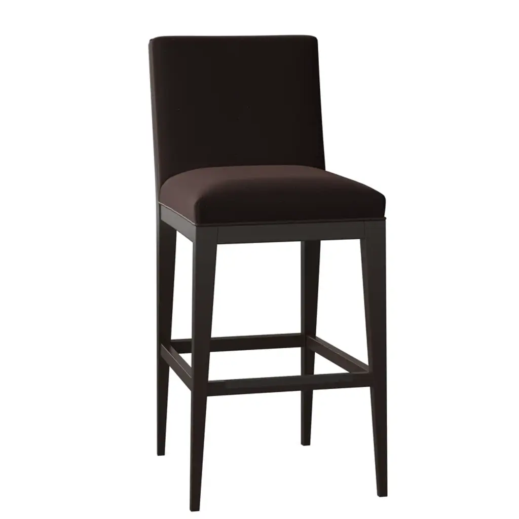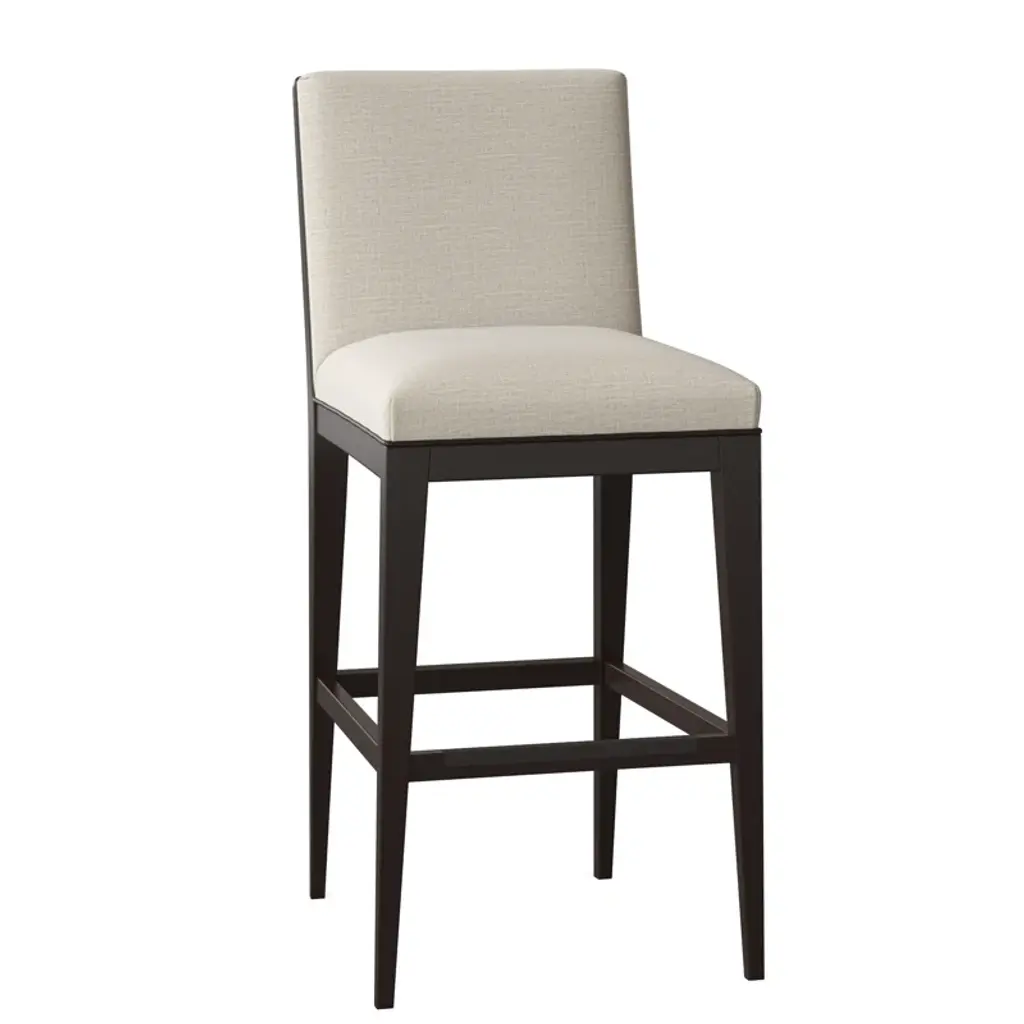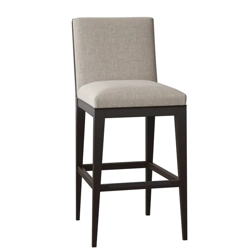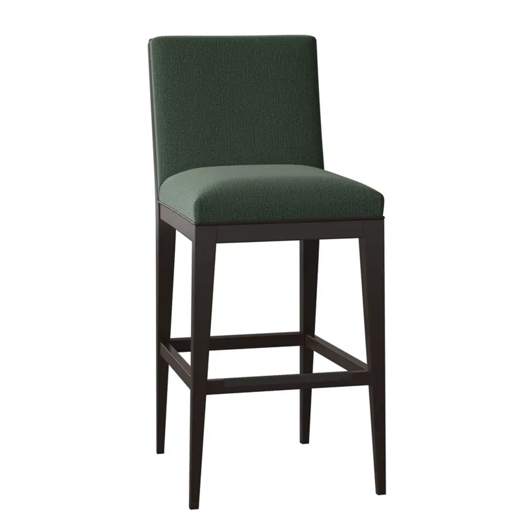 An exposed beech wood frame with a picture frame back is raised on tall tapered legs. The inside back and seat are upholstered.