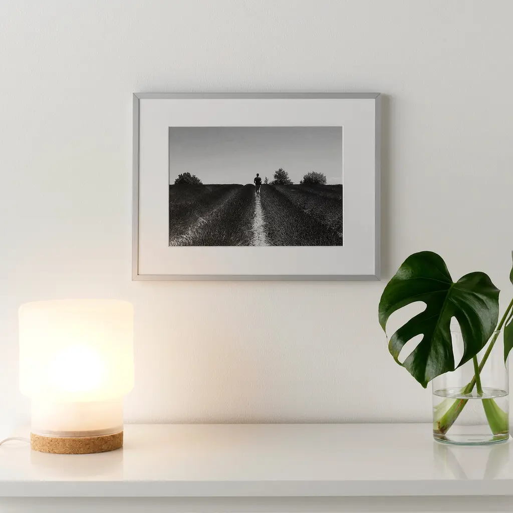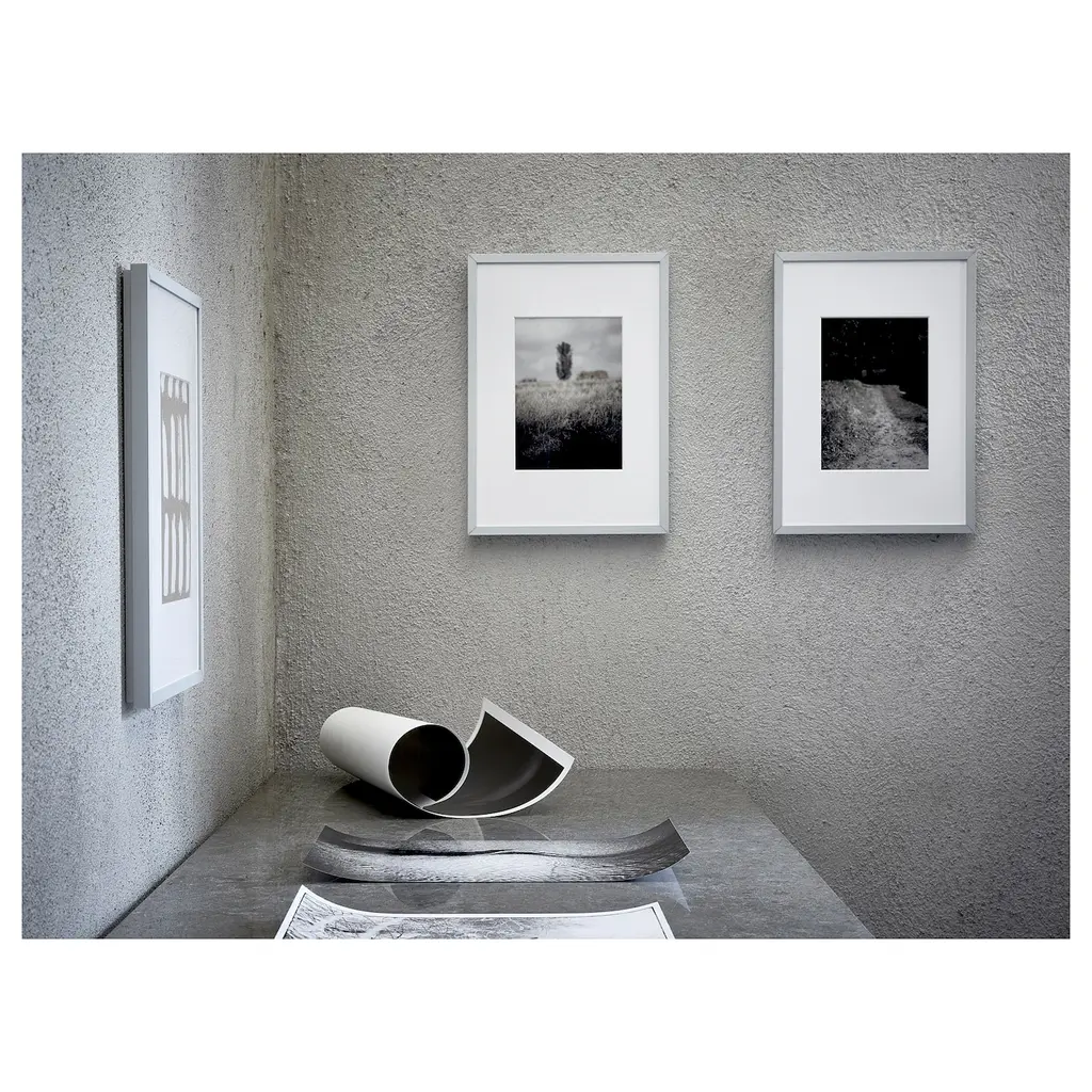 LOMVIKEN Frame - aluminum 12 ¼x16 ¼ ". This frame is ideal to use with ALFTA adhesive hook. With the hook you can easily hang the frame without nails or screws and decorate your walls with pictures. The frame can be used horizontally or vertically, whichever suits you or your picture best.