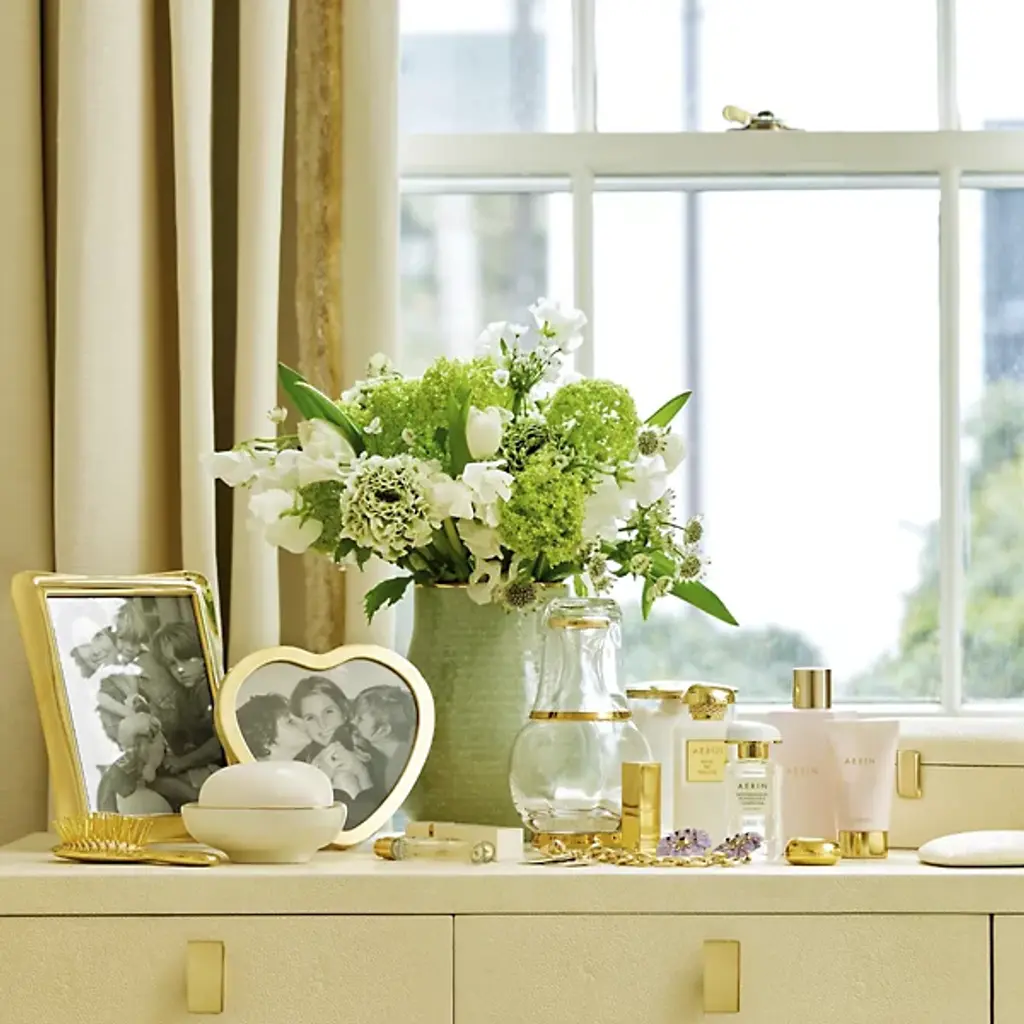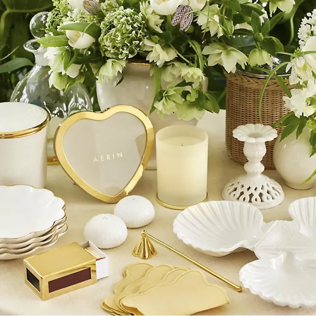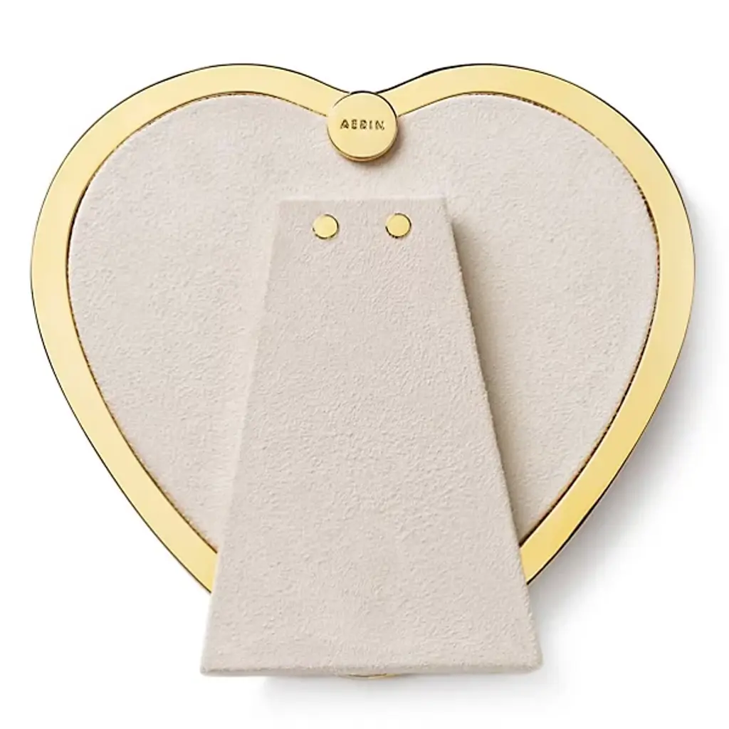 The Martin Heart Photo Frame from AERIN represents a central motif within the collection, bringing romantic symbolism to vanity or desk displays. This brass construction creates durability, while the heart shape naturally draws attention to cherished photographs of loved ones. Its compact proportions work particularly well in personal spaces where meaningful images deserve special presentation. The frame's gift-worthy appeal makes it suitable for anniversaries, Valentine's Day, or any occasion celebrating relationships and affection.