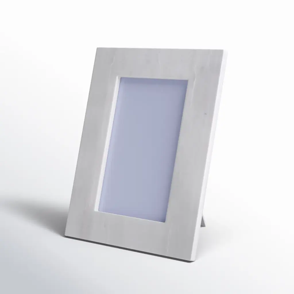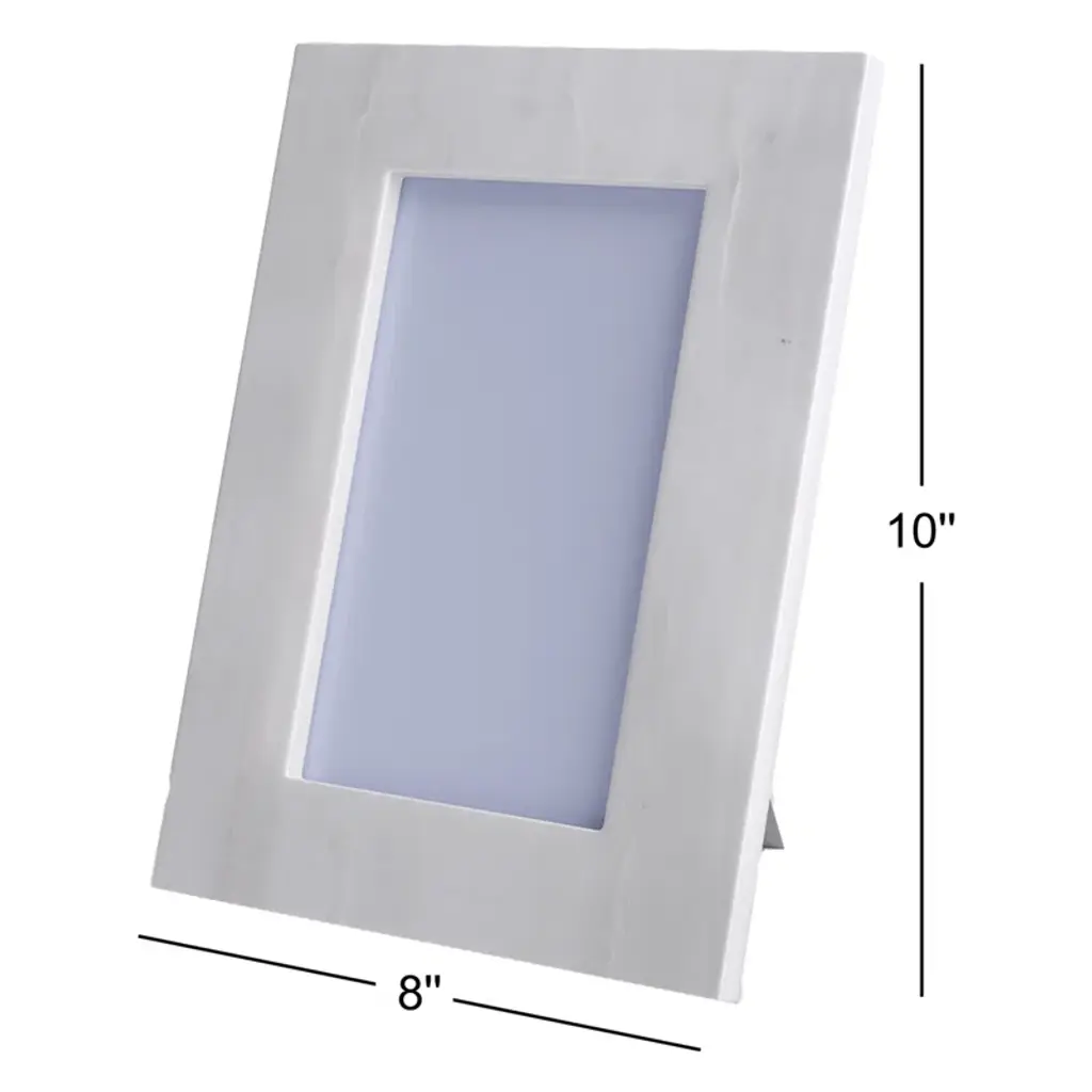 Classic rock. Crafted from creamy white marble, this picture frame’s timeless rectangular silhouette lets its monumental material take center stage. The freestanding design makes it ideal for a mantel or desktop, and an included mat keeps photos + artwork set in stone.