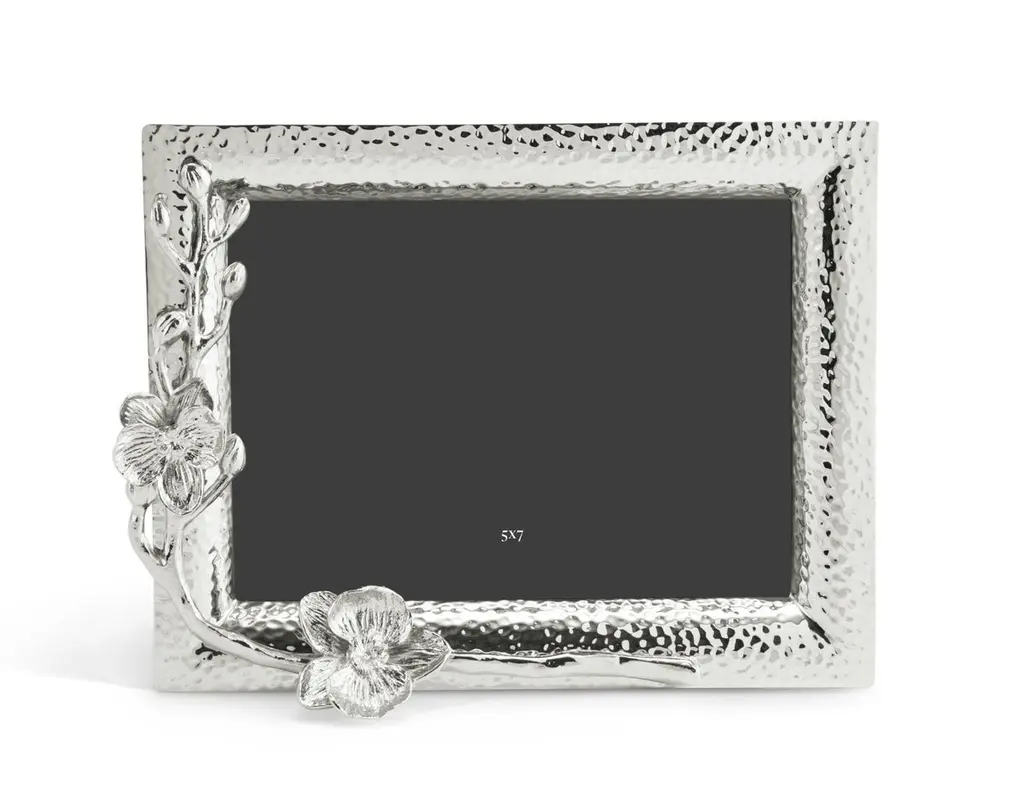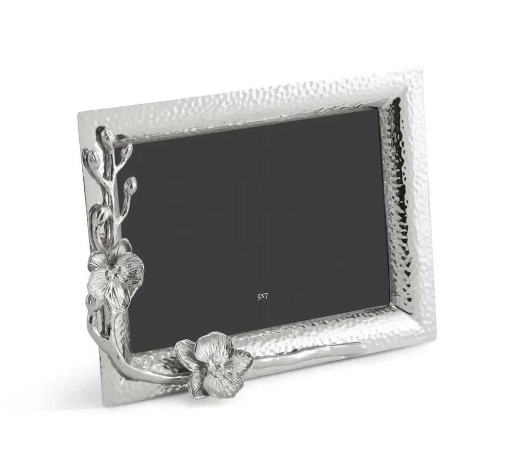 Medium Photo Frame With Orchid Design, Made From Nickel-Plated Metal.