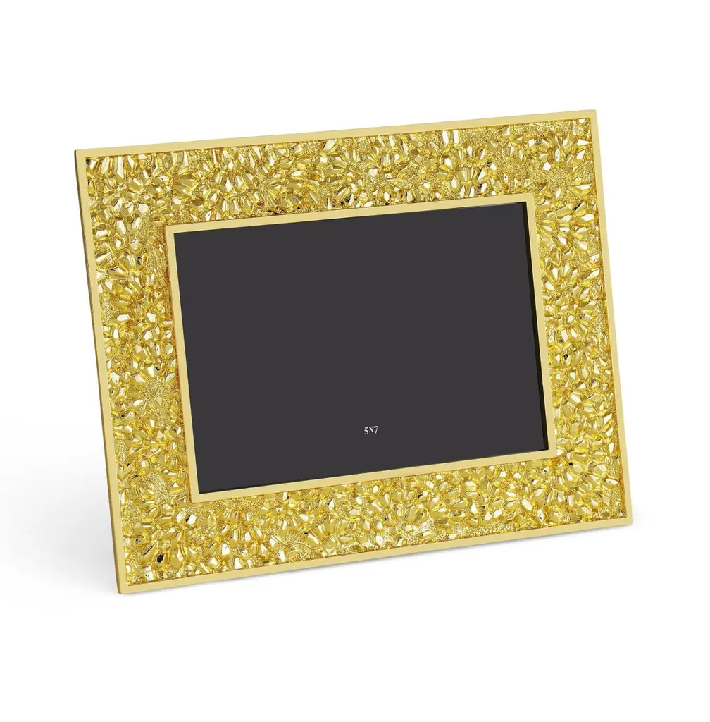 Medium-Sized Frame With Pomegranate Motif In Gold-Plated Metal.