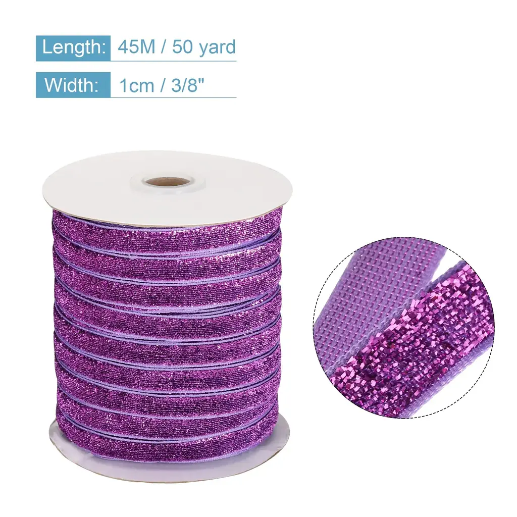 Metallic Glitter Velvet Ribbon 3/8 Inch X 50 Yard Single Face Ribbon - Dark Brown