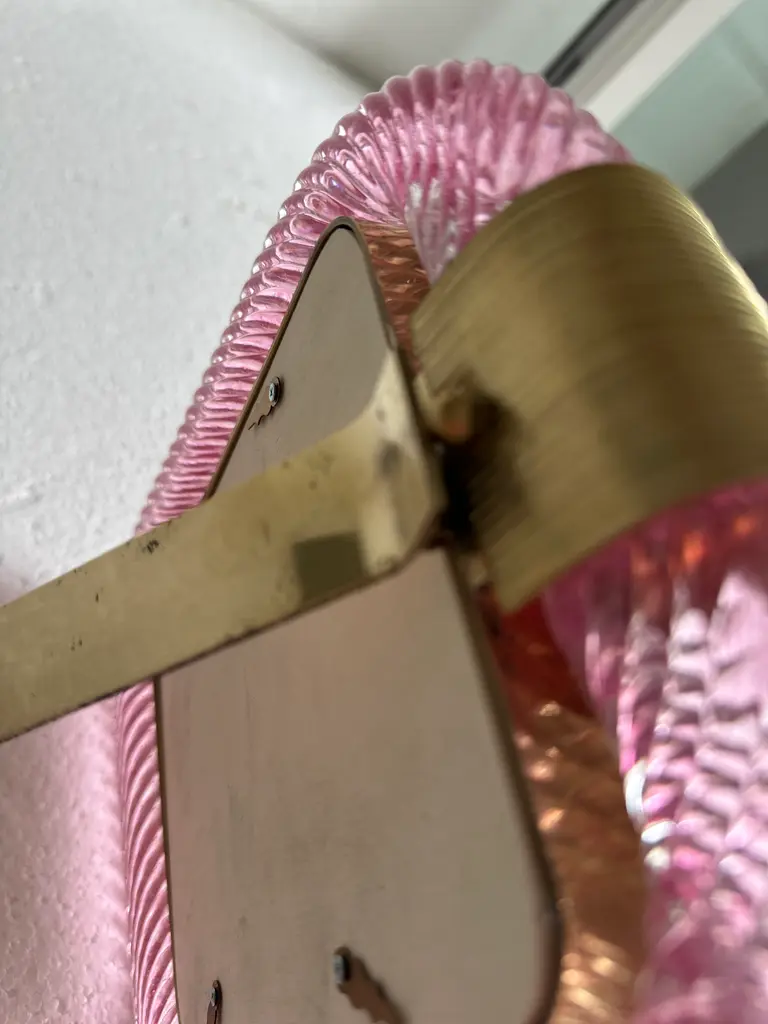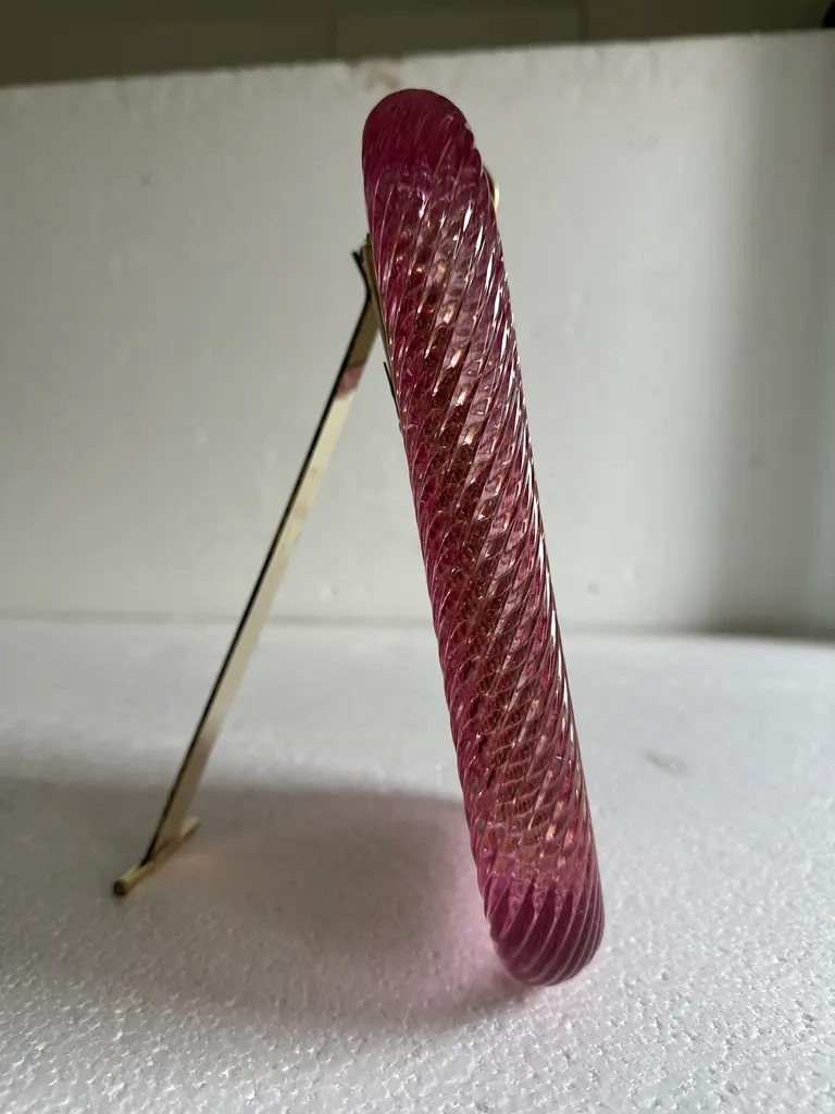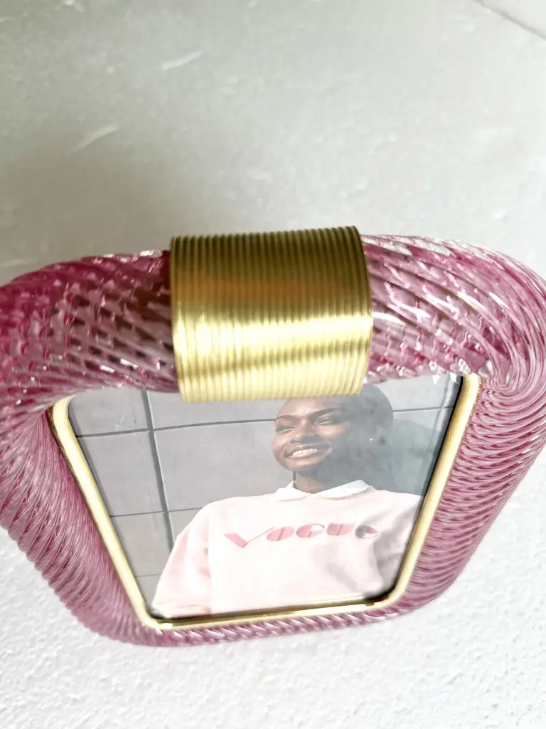 Mid-Century Modern Style Pink "Torchon" Murano Glass Small Picture Frame And Brass In Barovier Style