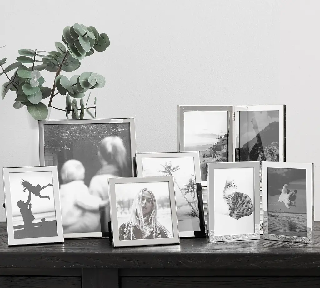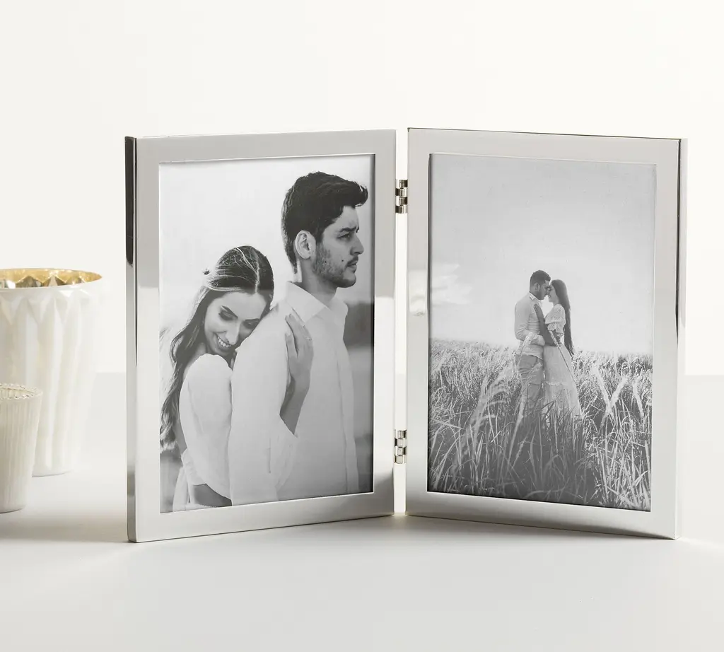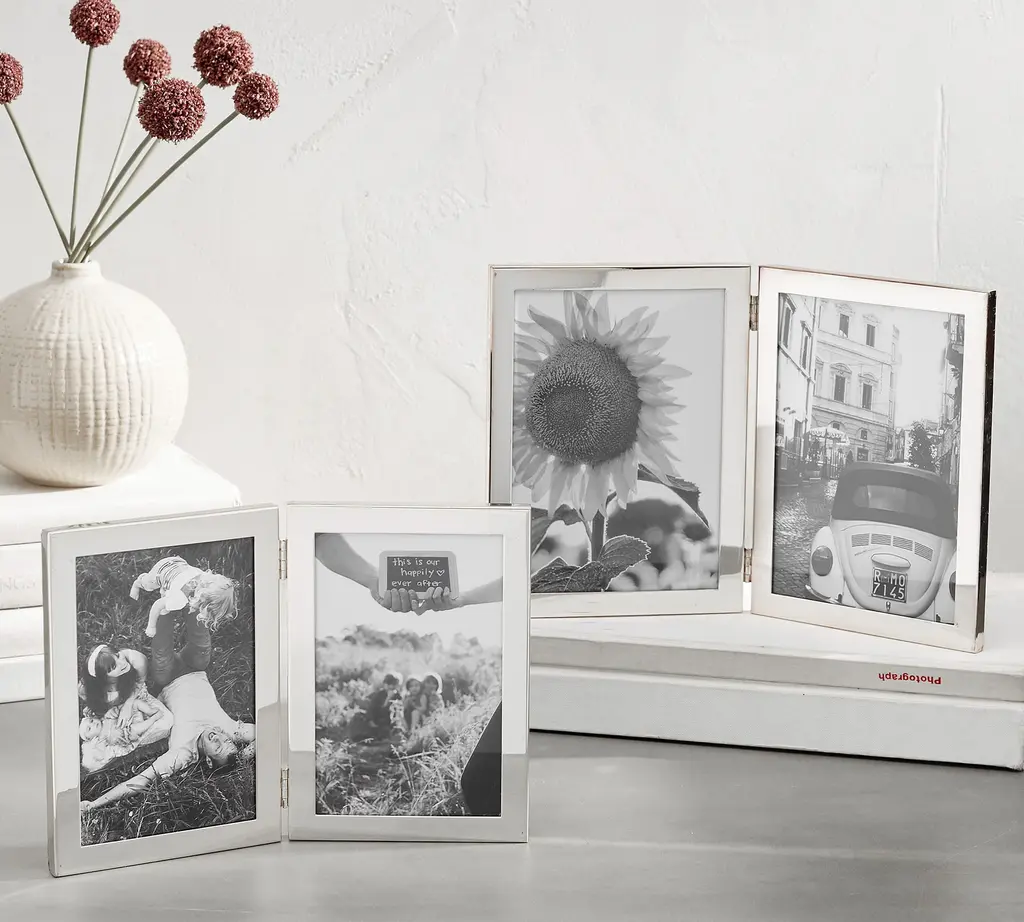 Make your favorite photos the focus of any room. The silver finish of our hinged frames complements any style decor, making them a sleek addition to your entryway table or bookshelf.