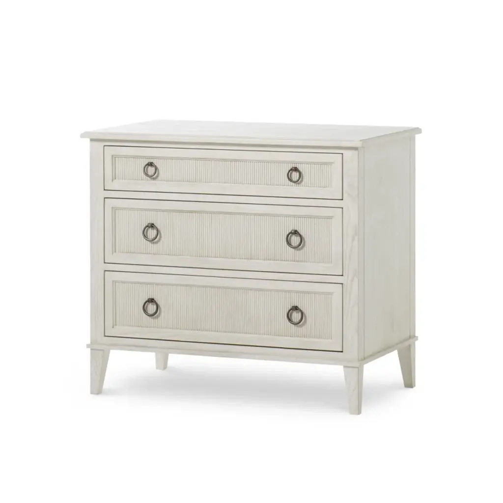 Monarch’s forms have classic roots that are reinterpreted in a softer, more casual, and transitional look. Ash solids and veneers are finished in a soft, chalk stain allowing the pieces to cross design barriers and work in many interiors. Design features include picture framed drawers centered with a carved, reeded design, tall tapered legs, pewter ring pulls, and soft close drawers.