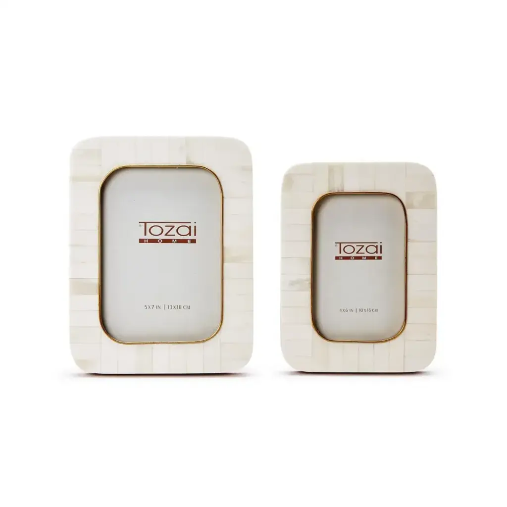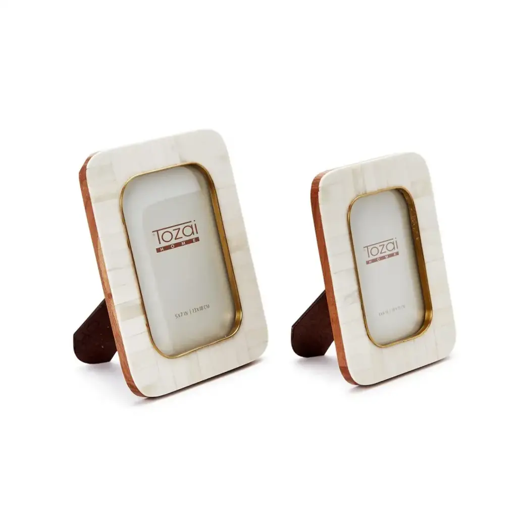 Immerse yourself in the timeless allure of our meticulously crafted frame, blending the essence and richness of natural bone with a warm brass border. Drawing inspiration from Bauhaus’ mid-century design, this stylish frame encapsulates a sense of nostalgia. Its seamless fusion of golden brass and the comforting softness of the ivory bone creates a captivating piece that effortlessly enhances the beauty of your cherished photographs. Experience the organic elegance that this frame exudes, as it invites you to showcase your favorite memories with grace and sophistication.