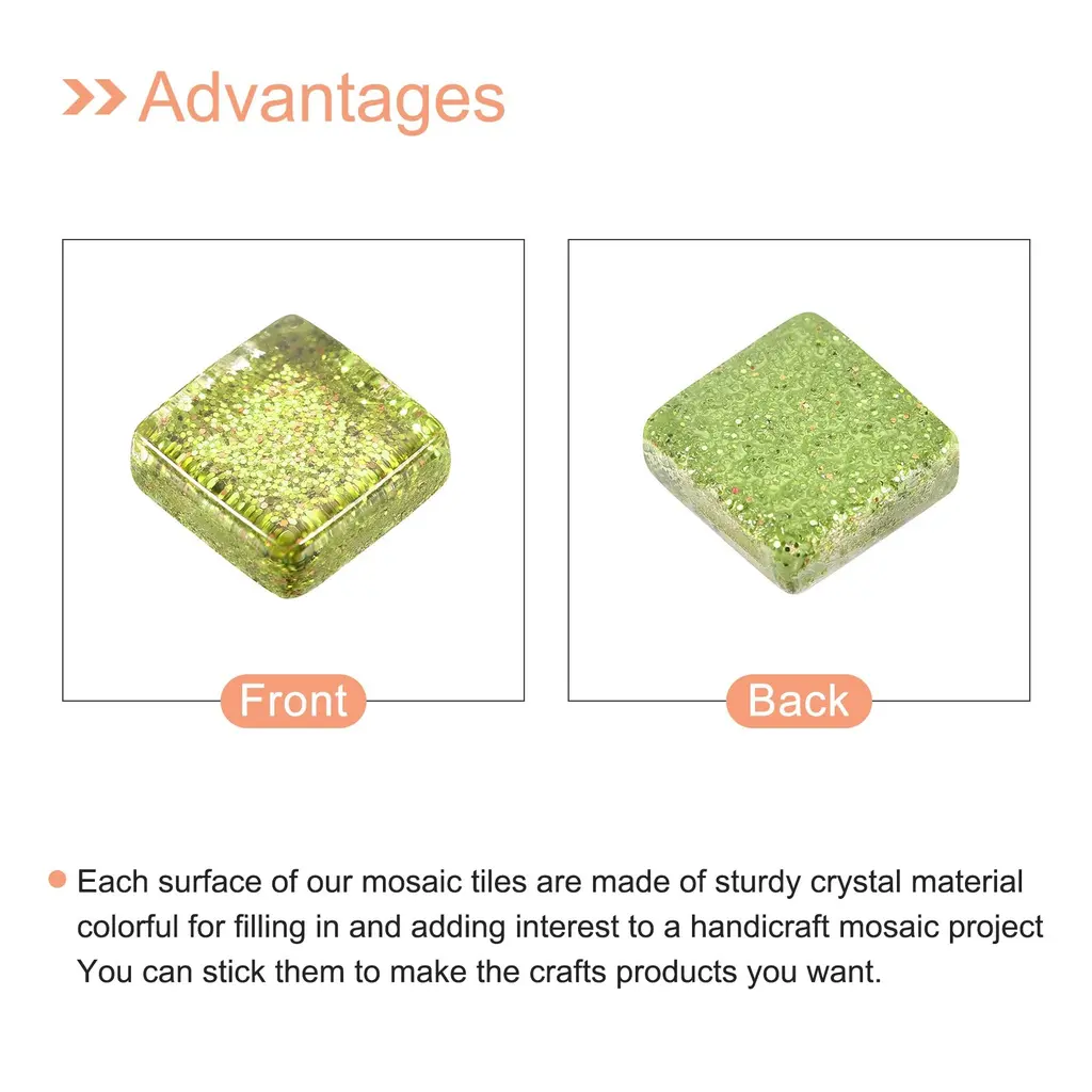 What is this?Great for Fun Mosaic Crafts - Used for Sticking mosaic tiles on cups, plates, photo frames, and Art Crafts. Apply mosaic tiles to stepping stones, outdoor tables & seats, garden pots & planters, make your patio more interesting and appealing and surround yourself with bright colors and patterns.What will I get?Color: Grass GreenMaterial: GlassFinish Type: PolishedInstallation Type: Glue Down(Not Included Here!)Square Mosaic Size : 1 x 1 x 0.4 cm/0.4 x 0.4 x 0.16inch(L*W*T)In the package of: Approximately 200pcs(200g) Mosaics TilesAre there any advantages of the product?Material: mosaic tiles are made of sturdy crystal material, colorful for filling in and adding interest to a handicraft mosaic project; You can stick them to make the crafts products you want.Feature: the surface is smooth, won't hurt your hands, has a uniform thickness, more bright and more beautiful at a closer distance; The color of these mosaics will never lose.This mosaic glass pieces assortment is perfect for beginners and experienced mosaic artists alike.How to use it?A great gift for friends and families to add more fun while DIY their own crafts, a large quantity enough to make your craft project. Have it now to start creating your next masterpiece!What should I notice?There may be a slight color difference between the real object and the picture. For manual measurement, please allow a slight dimensional error in the item.