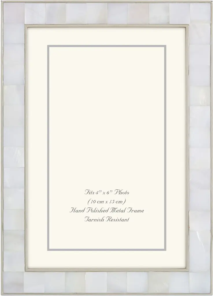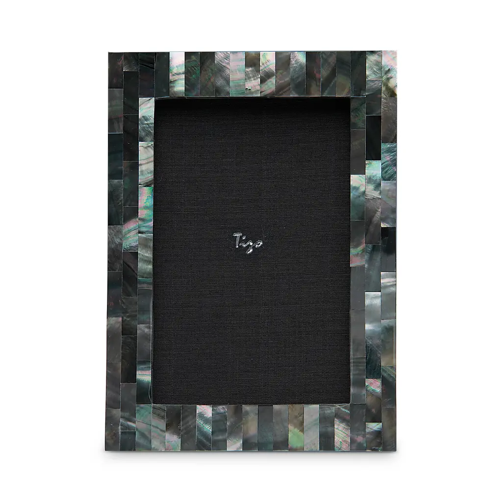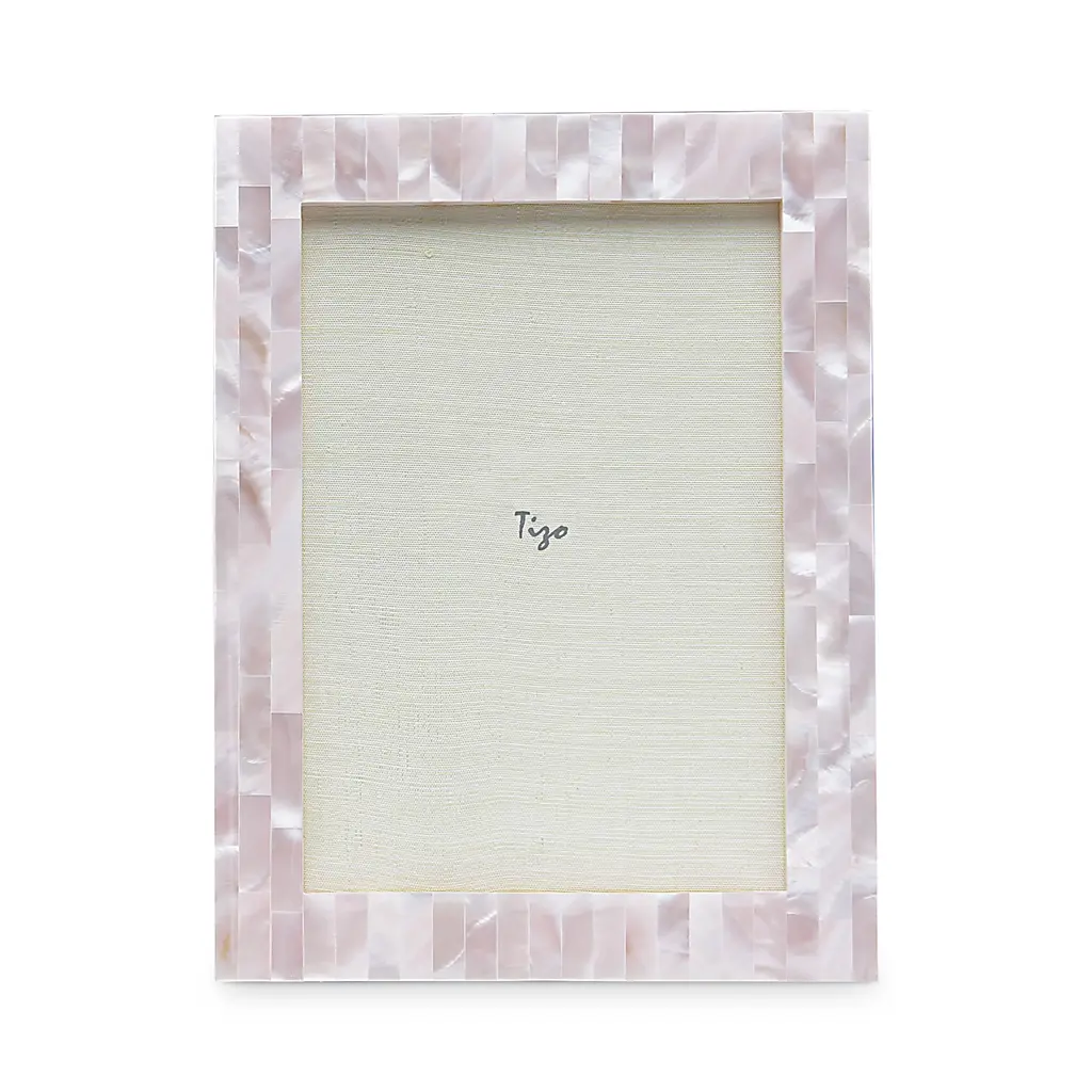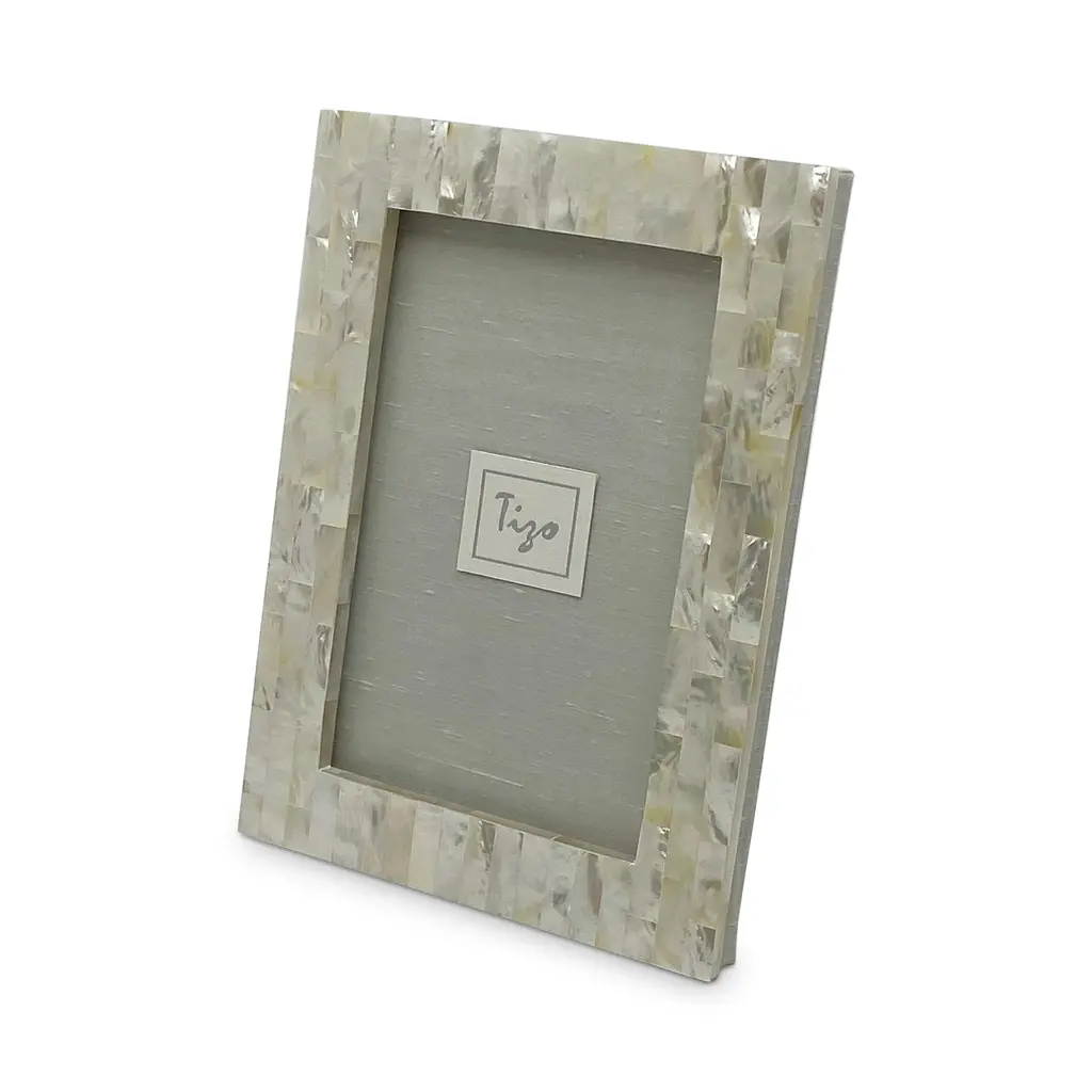 With its elegant design and easel back, the Mother of Pearl frame collection from Tizo Design will display your favorite photographs in iridescent style.