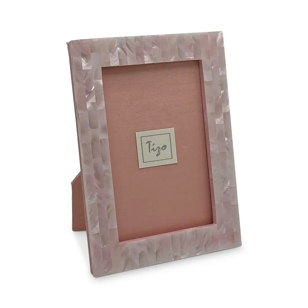 With its elegant design and easel back, the Mother of Pearl frame collection from Tizo Design will display your favorite photographs in iridescent style.