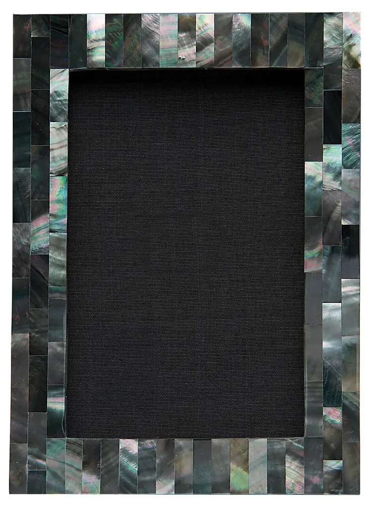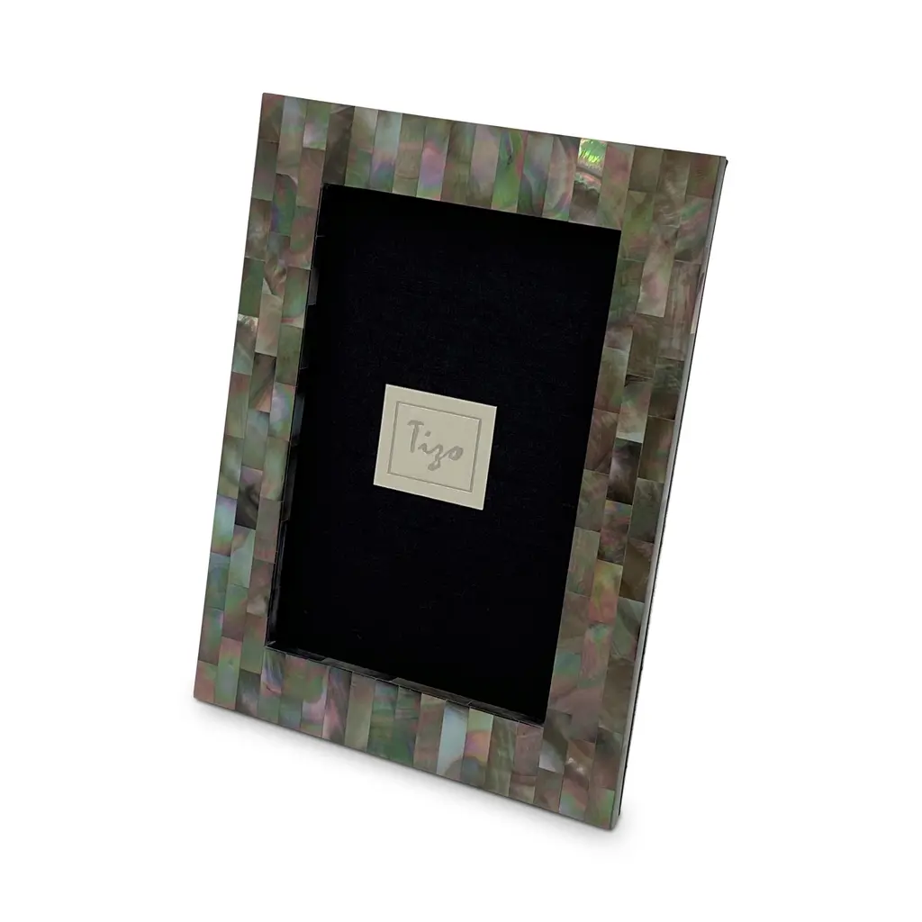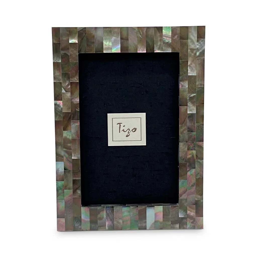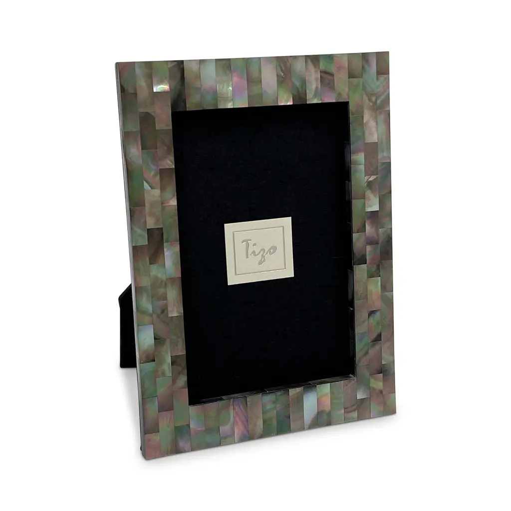 With its elegant design and easel back, the Mother of Pearl frame collection from Tizo Design will display your favorite photographs in iridescent style.