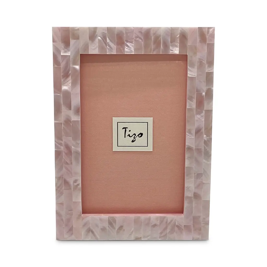 With its elegant design and easel back, the Mother of Pearl frame collection from Tizo Design will display your favorite photographs in iridescent style.