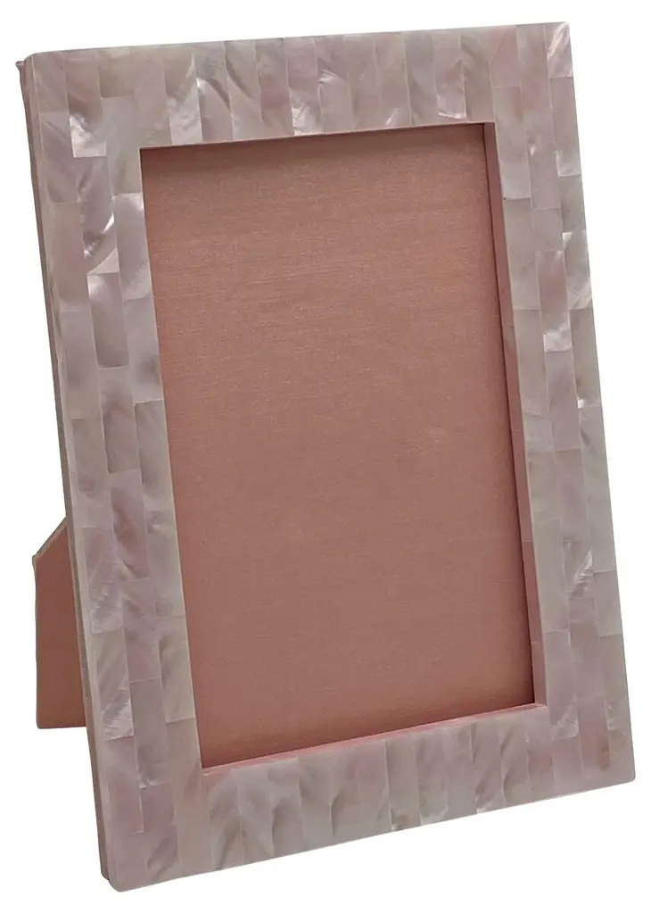 Tiles of luminous mother-of-pearl give this frame organic elegance and ensure that the photo within commands attention in the most beautiful way possible.