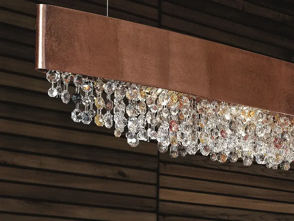 Vergas S8 OV210 is a Led suspension lamp made of metal with crystals.Electrical characteristicsSTANDARD: 8XE14X10W (NOT INCL)CEETLLED: UP: LEDX15,6W CRI>95 3000K 1536LMDOWN: LEDX70,2W CRI>95 3000K 6912LMLED: UP: LEDX15,6W CRI>95 2700K 1464LMDOWN: LEDX70,2W CRI>95 2700K 6588LMDIMMABLE: 0-10VCE LEDETL LEDCCC LEDCB SCHEME LEDPowder coated metal frame, coated italian-glass pendants. Available in 7 different finishings: matt white frame comes with cold colours pendants, gold leaf frame comes with amber colours pendants, silver leaf frame comes with transparent pendants, copper leaf frame comes with copper colours pendants, matt bronze frame comes with warm colours pendants or burnished frame comes with amber colours pendants, matt blake with smoky pendants