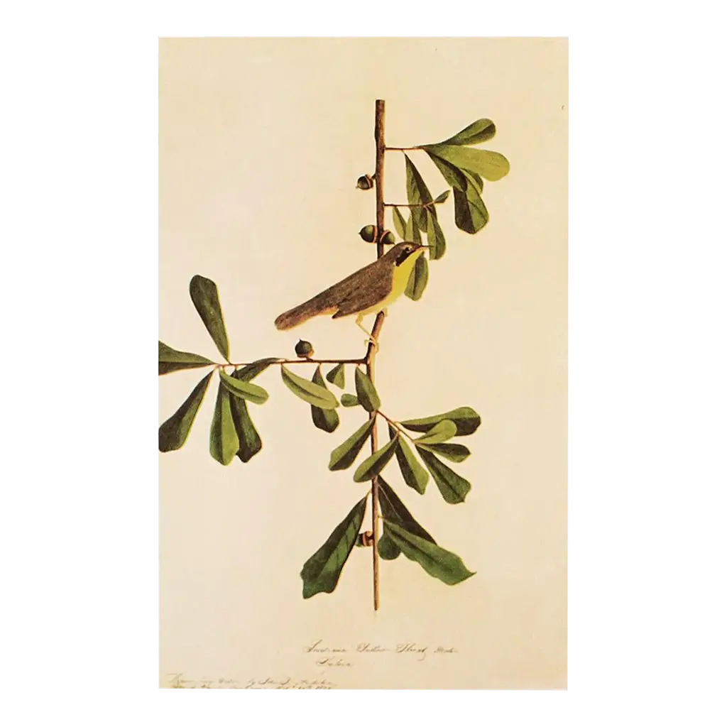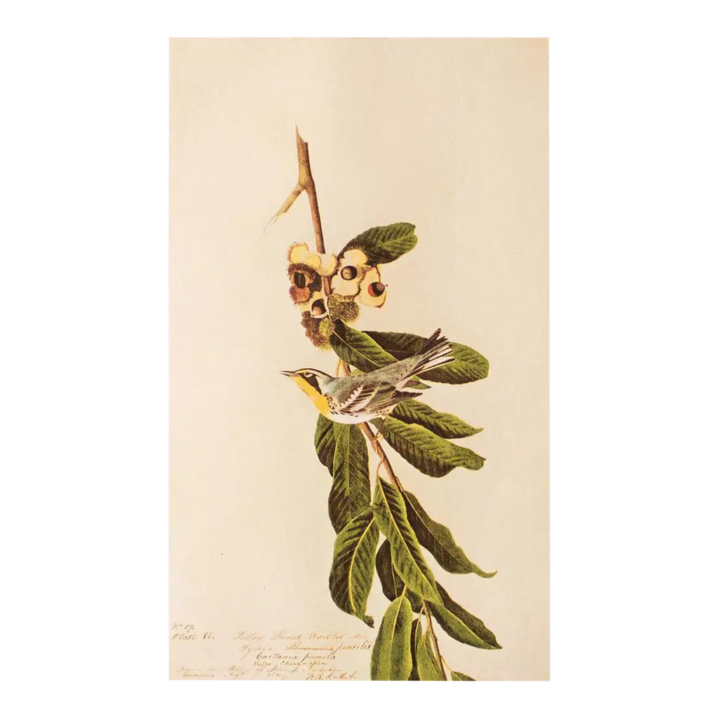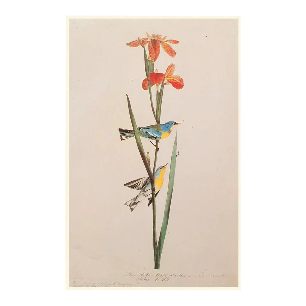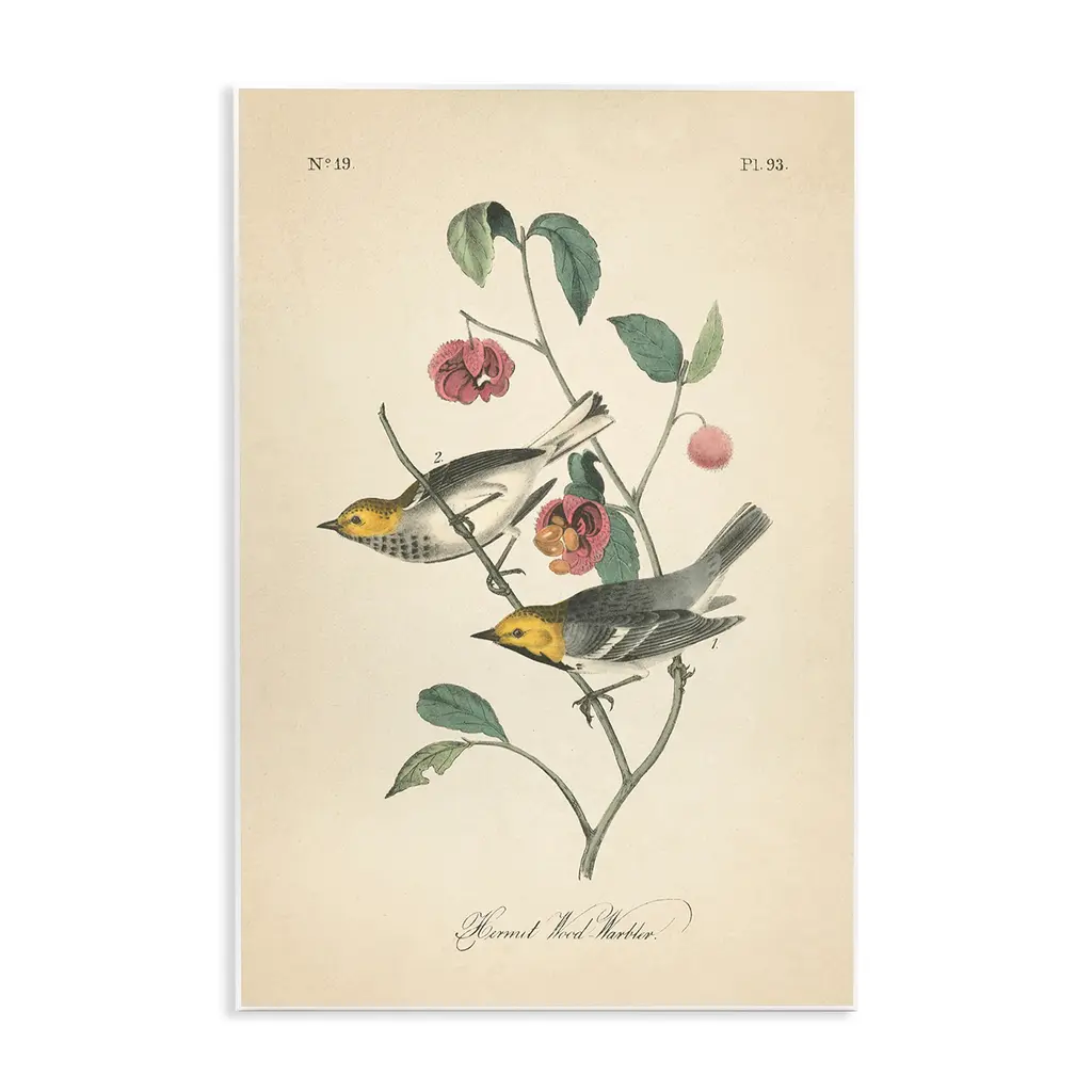 Pair of Golden Orioles and Nest on a Branch, from Book of Worlds, 1856This exquisite hand-colored ornithological print, titled "Der Kirschpirol" (The Golden Oriole), was published in 1856 as part of the German natural history series Book of Worlds. The illustration features two beautifully rendered Eurasian Golden Orioles (Oriolus oriolus) perched near their intricately woven nest, suspended delicately among leafy branches. The male, in vibrant yellow with contrasting black wings, is seen at the lower center, while the more subtly colored female, with greenish tones and streaked underparts, rests above. Their alert posture and the precise depiction of the nest suggest the height of nesting season, likely spring or early summer.Attributed to a tradition of fine 19th-century German naturalist illustration, this print is exemplary of the intersection between scientific observation and artistic refinement. The lithograph not only serves as an accurate zoological study but also as a decorative work of art. The attention to detail in the plumage, foliage, and nest construction highlights the illustrator's commitment to realism, characteristic of the period's best ornithological works.This piece comes from the rare publication Book of Worlds (1856), a lesser-known but richly illustrated work dedicated to the natural diversity of Earth. Its inclusion of birds, plants, and other fauna makes it an invaluable collector’s item for those interested in 19th-century natural history documentation. The text beneath the image includes the German name and the print number 20, with the year 1856 engraved in the lower margin.Condition Report:Good overall condition with only minimal foxing in the margins. Vibrant original hand-coloring remains fresh and detailed. Edges clean with no visible tears. Slight age-toning appropriate for 19th-century paper.Framing Tips:Best framed with a double mat: a pale cream outer mat with a narrow golden yellow inner mat to echo the bird’s plumage. A natural wood or gold-leaf frame will enhance its antique appeal and preserve its historical character. Use UV-protective glass.