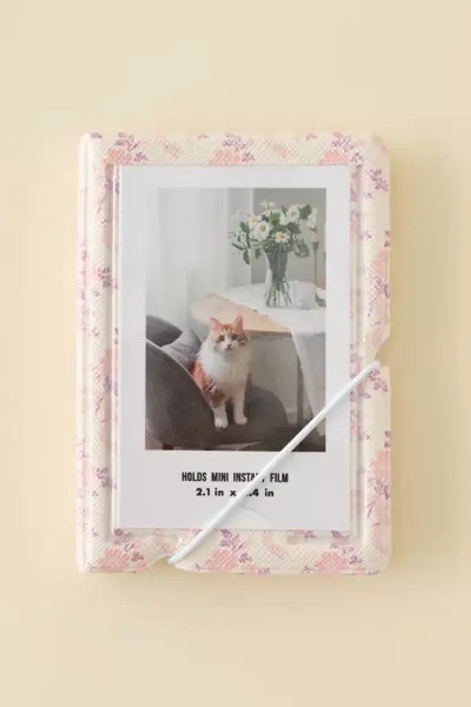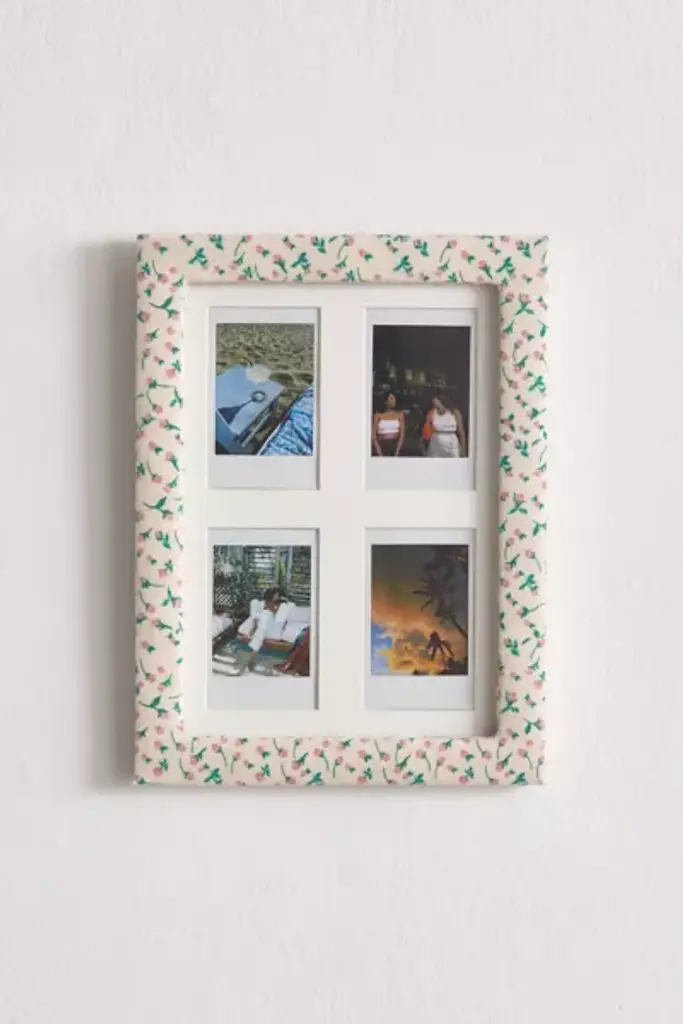 Create a femme display with the Penelope INSTAX Picture Frame. Featuring a fabric-wrapped frame with a protective glass pane, this picture frame holds up to four of your fave INSTAX MINI photos. Available exclusively at Urban Outfitters. **Features** \- Penelope INSTAX Picture Frame from UO Home \- Fabric-wrapped frame with allover motifs \- Holds 4 INSTAX MINI photos \- UO exclusive **Content + Care** \- MDF, glass \- Wipe clean \- Imported **Size** \- Dimensions: 3"l x 1.75"w x 3.75"h \- Weight: 0.3 lbs