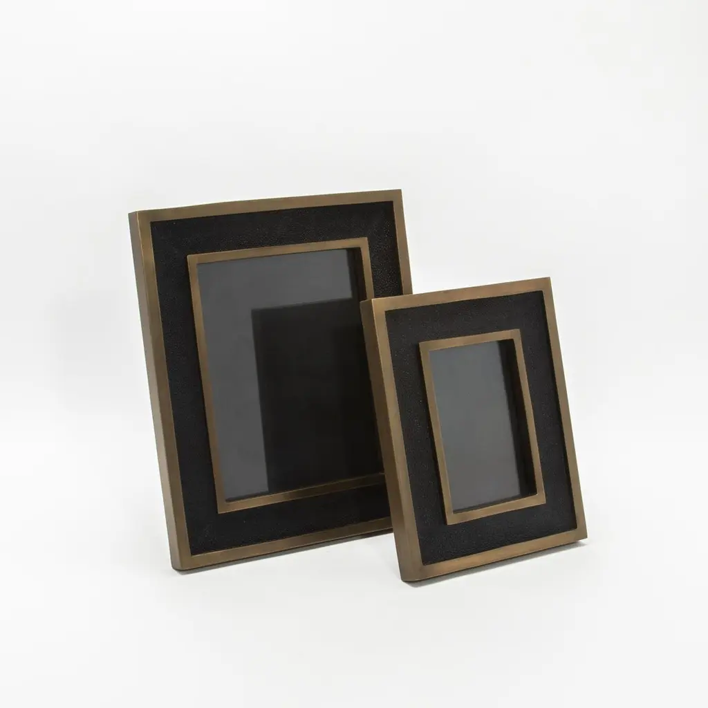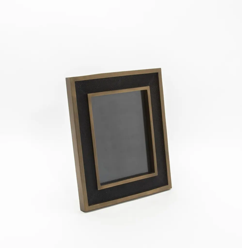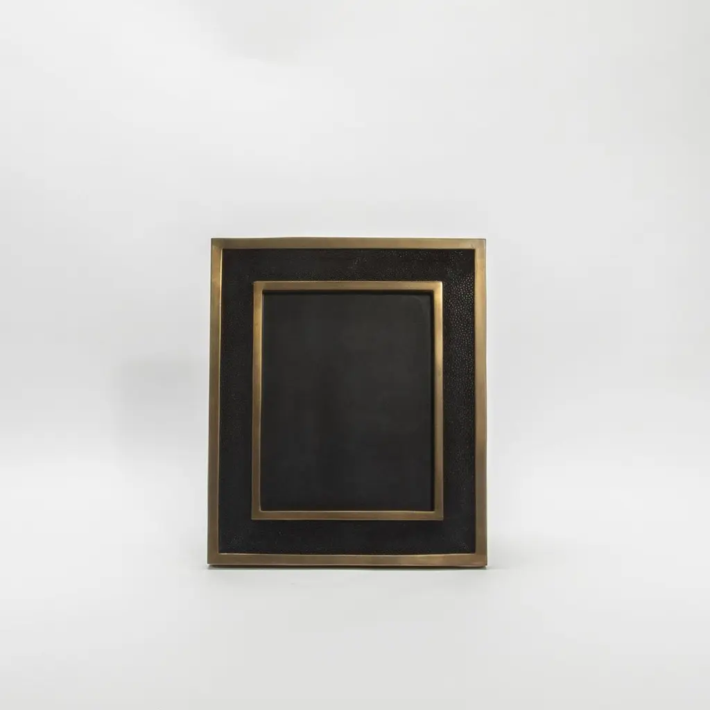 Picture Frame 8X10” In Black Shagreen With Brass Details By Kifu Paris