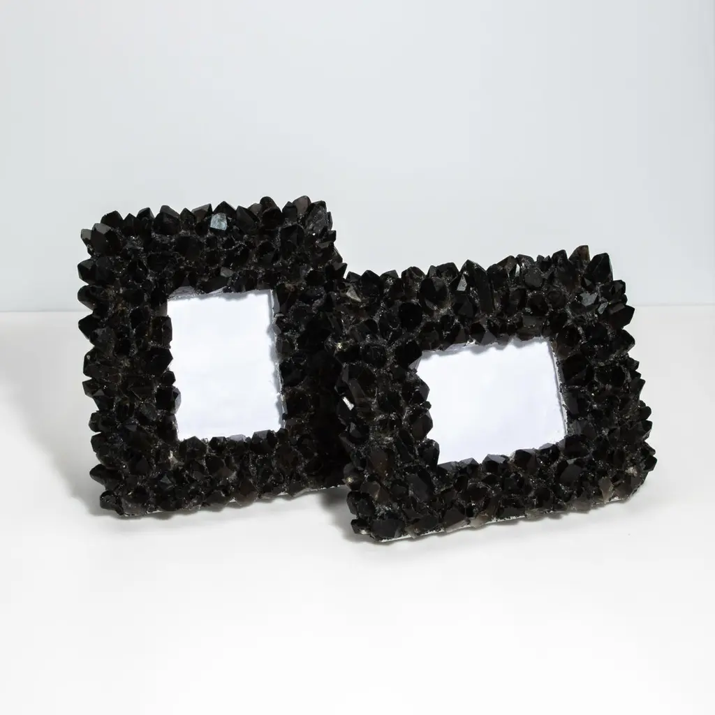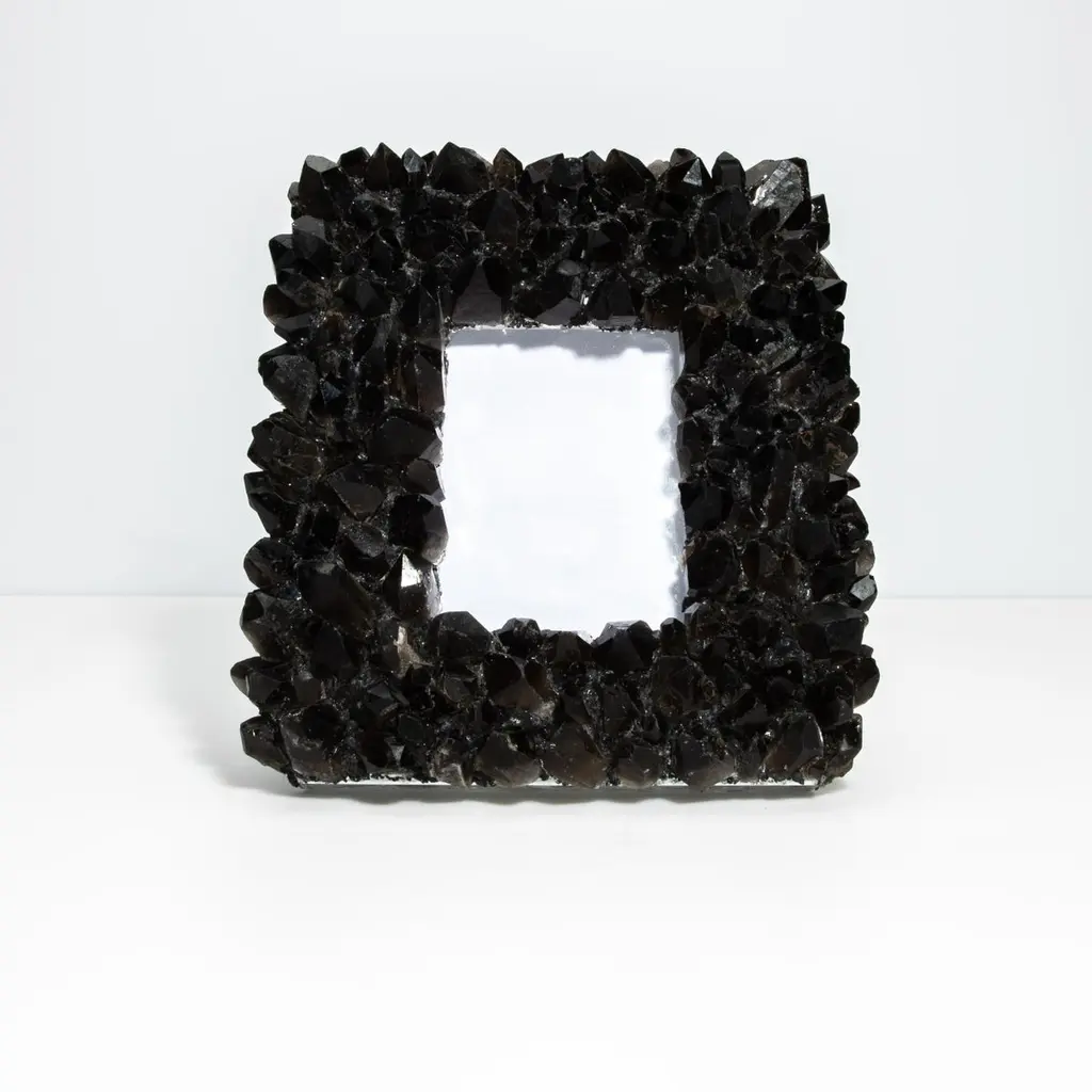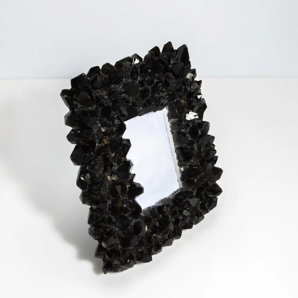Kathryn McCoy is a designer renowned for her exquisite home decor pieces that highlight the natural beauty of crystals. Beginning her career in New York City's fashion industry, Kathryn transitioned her keen eye for style into creating unique decor items. Her commitment to using only the finest materials and her meticulous craftsmanship have made her collections highly sought after. Each piece in her collection is a testament to her dedication to quality and her ability to transform raw, natural elements into stunning works of art.This Kathryn McCoy frame, adorned with black quartz crystals, is a perfect blend of elegance and natural beauty. The frame showcases the intricate structure and deep, rich tones of black quartz, making it a standout piece for any elegant interior. Handcrafted by skilled artisans, the frame's unique design ensures that no two pieces are exactly alike, providing a truly one-of-a-kind addition to your decor. Ideal for displaying cherished memories, this frame not only serves a functional purpose but also adds a touch of luxury and sophistication to any space.Reference Number: E271555