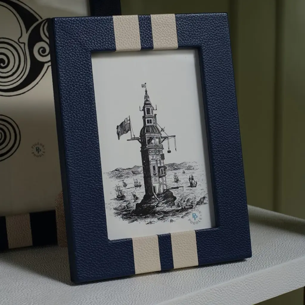 Pigeon And Poodle Blake Coastal Beach Navy Blue Leather Striped Photo Frame - 4X6