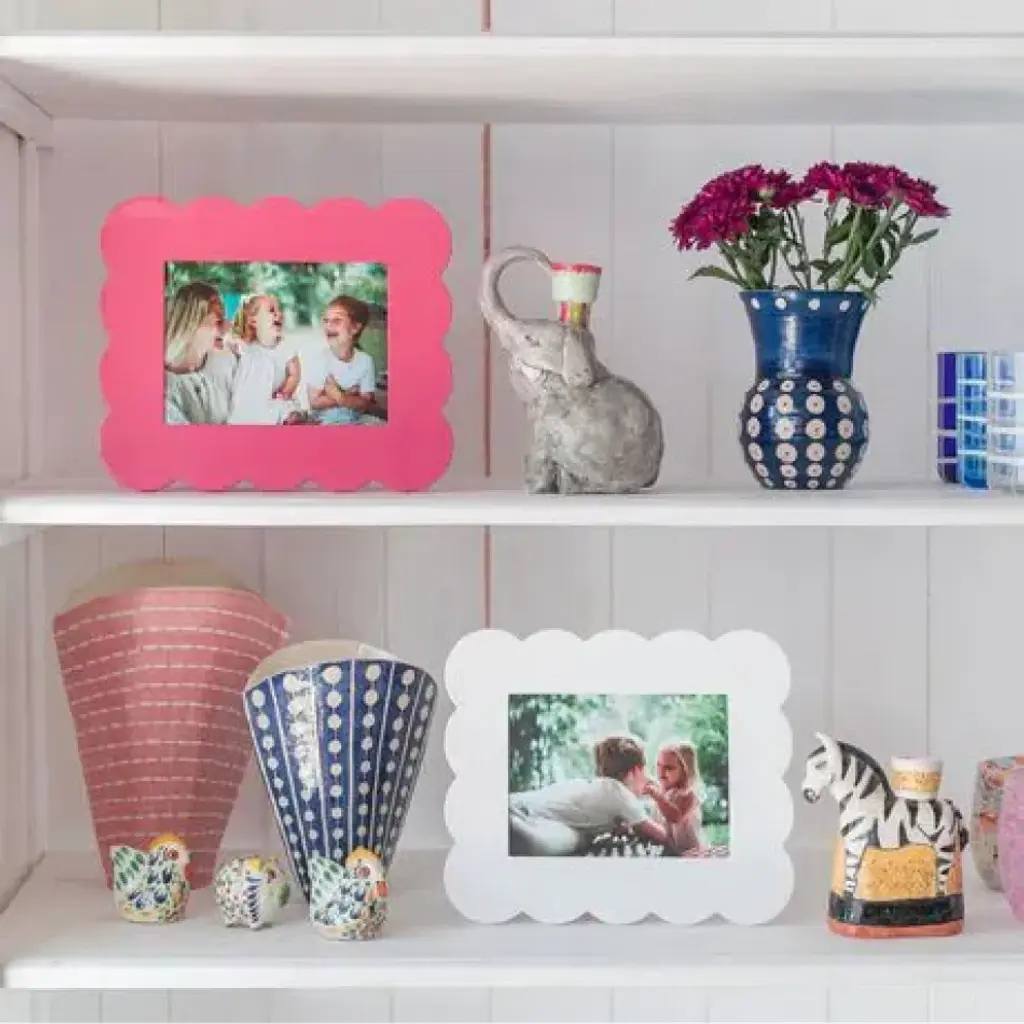 This lovely Pink Scalloped Photo frame is finished with 20 coats of high gloss lacquer, hand polished between each coat. This frame will match perfectly with one of our lacquered tray or boxes.