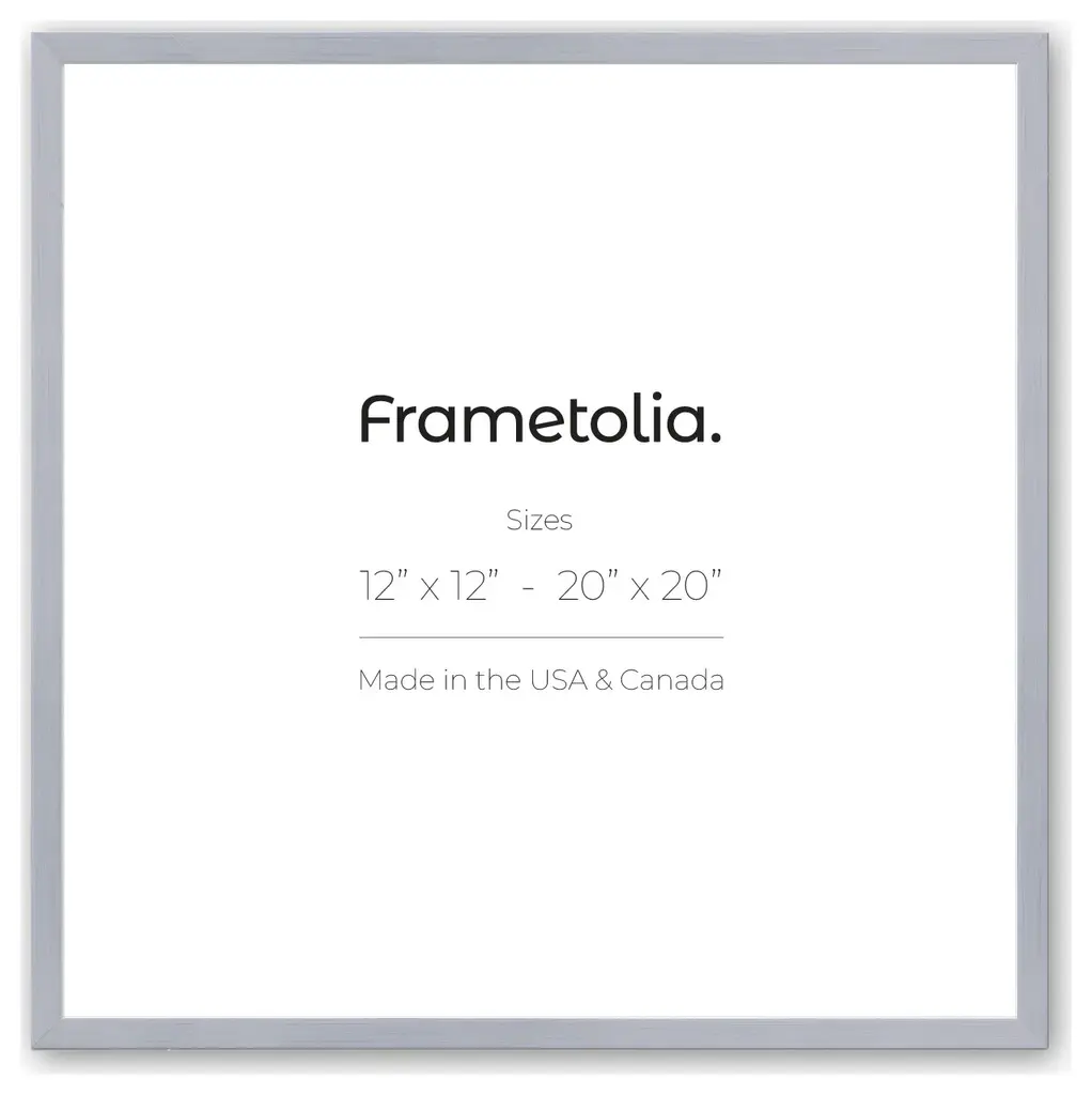 This picture frame has a color of the purest white chrome – ever so slightly muted by its soft brushed metallic finish – to give your space a modern look and feel.· Wall/Gallery Frame with hanging hardware and wire included.· Made from 100% sustainably sourced wood. No plastic or toxins in this frame!· 1.5 mm crystal clear plexiglass is provided. No need to peel off any film, our frame is ready to hang.· No mat, narrow or wide white mat, you decide. Please see our size guide for sizing details.· Every frame can be displayed in landscape or portrait.· Our frames are created from high-quality mouldings by artisans in Italy and custom-built and assembled in our facilities across the United States and Canada.· Fits 20" x 20" pictures. Mat not included.