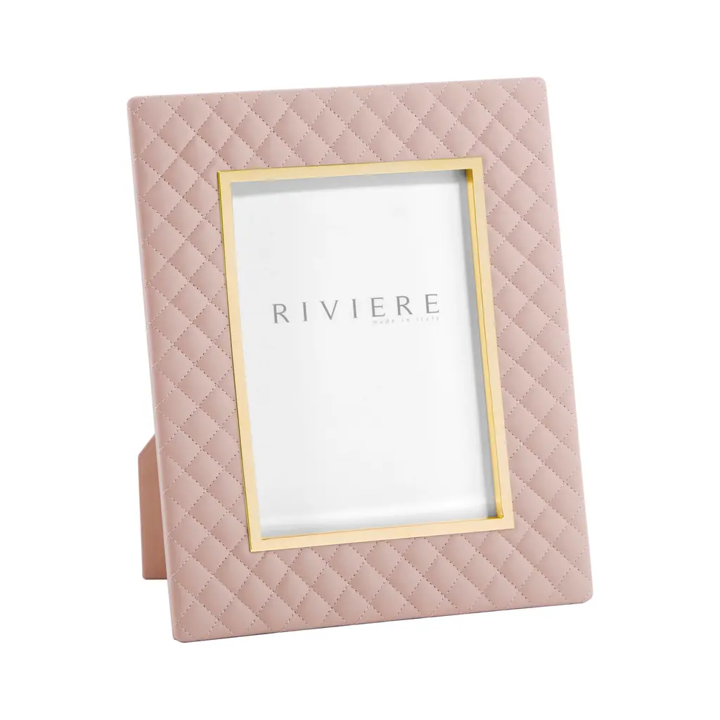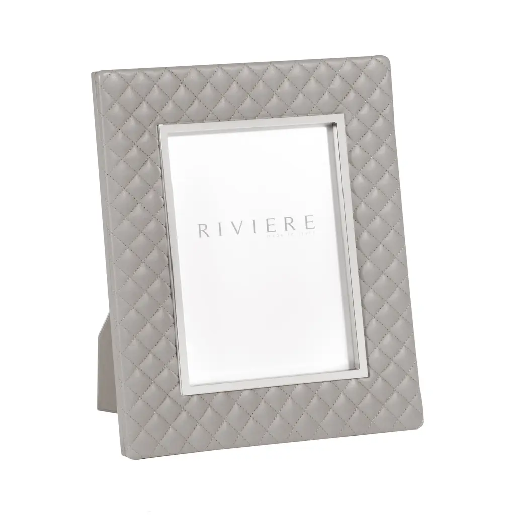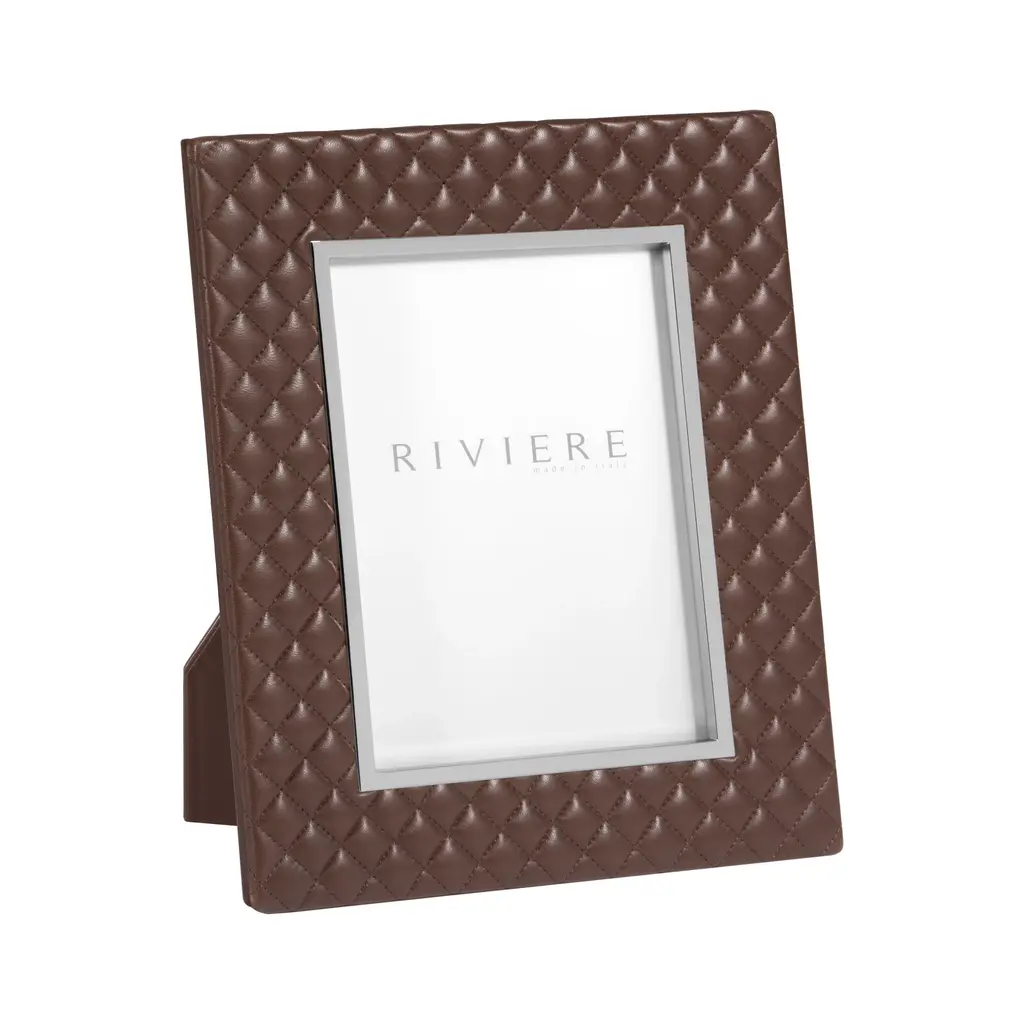 A touch of couture for your living room, the Giobagnara x Riviere Anita Picture Frame is a glamorous design from the Riviere collaboration. Expertly handcrafted in Italy, its surface is wrapped in soft, padded leather stitched into a timeless quilted diamond pattern. A sleek, polished metal trim elegantly outlines the frame, creating a brilliant contrast. A perfect fusion of high-fashion texture and refined detail, it transforms a personal memento into a true decorative jewel for any surface. Highlights: