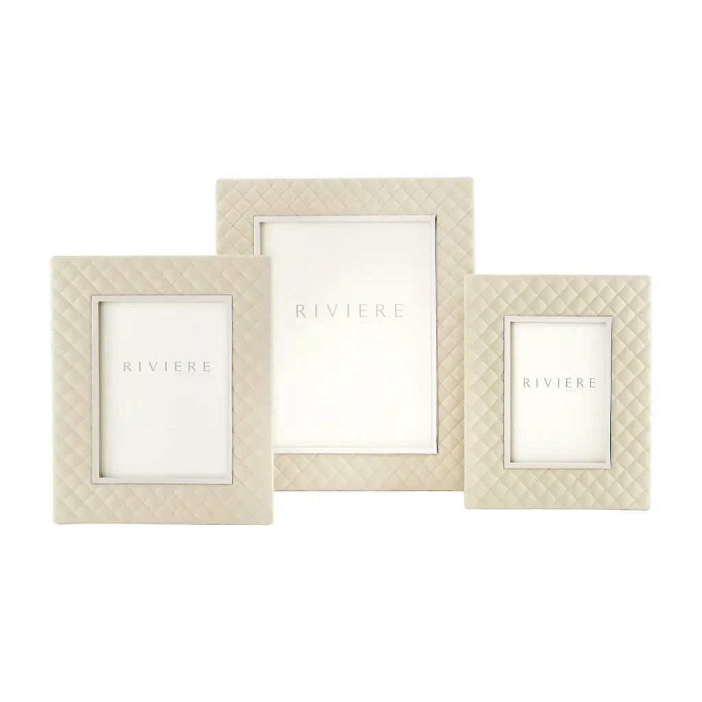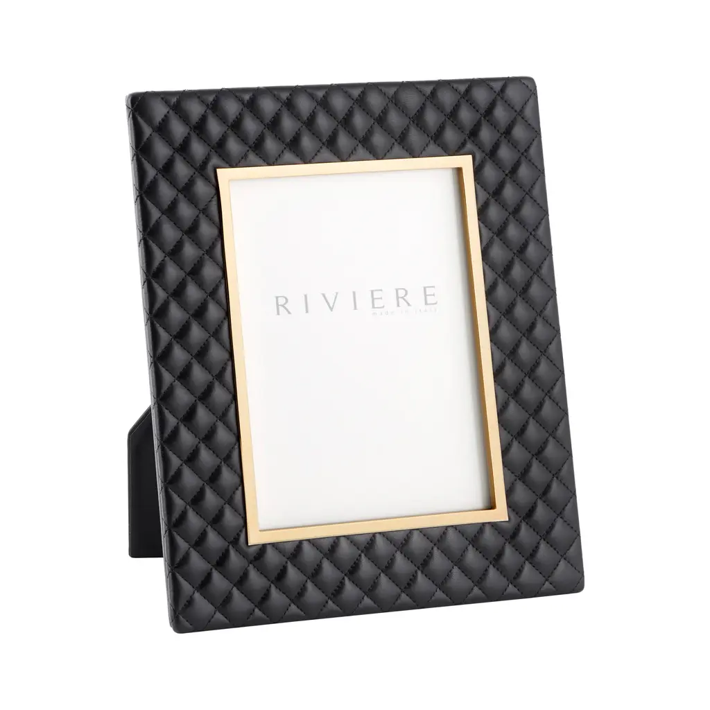 A touch of couture for your living room, the Giobagnara x Riviere Anita Picture Frame is a glamorous design from the Riviere collaboration. Expertly handcrafted in Italy, its surface is wrapped in soft, padded leather stitched into a timeless quilted diamond pattern. A sleek, polished metal trim elegantly outlines the frame, creating a brilliant contrast. A perfect fusion of high-fashion texture and refined detail, it transforms a personal memento into a true decorative jewel for any surface. Highlights: