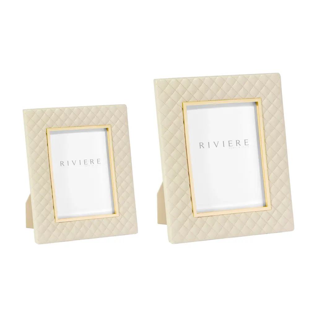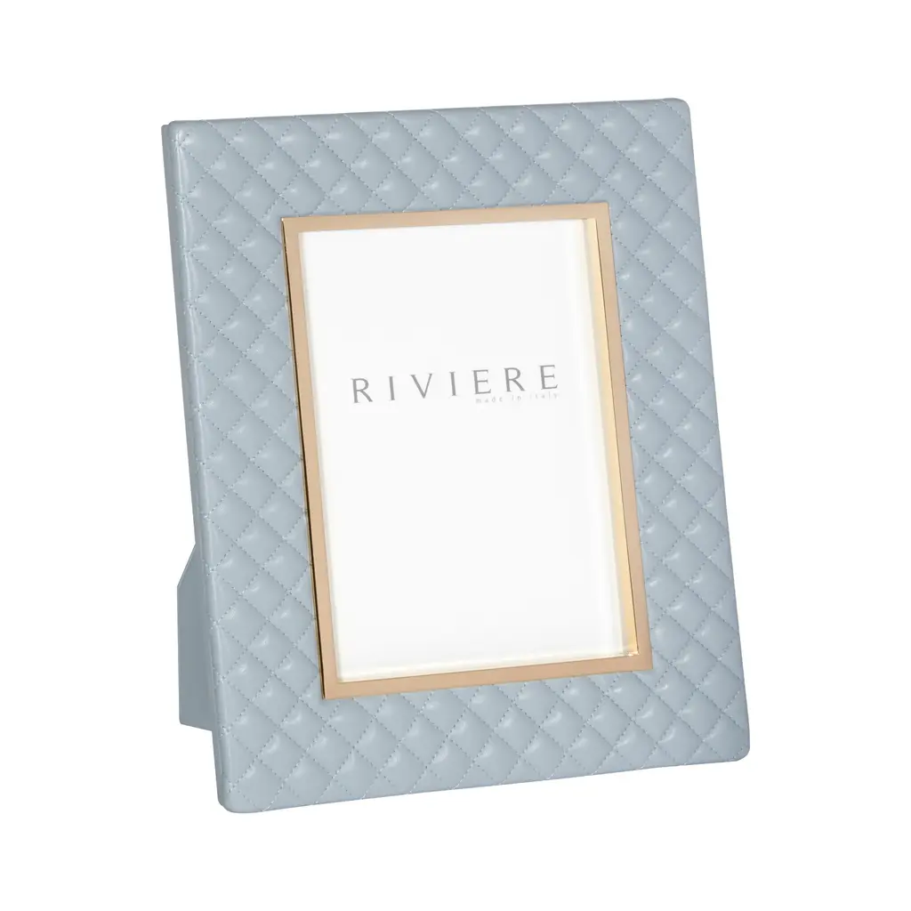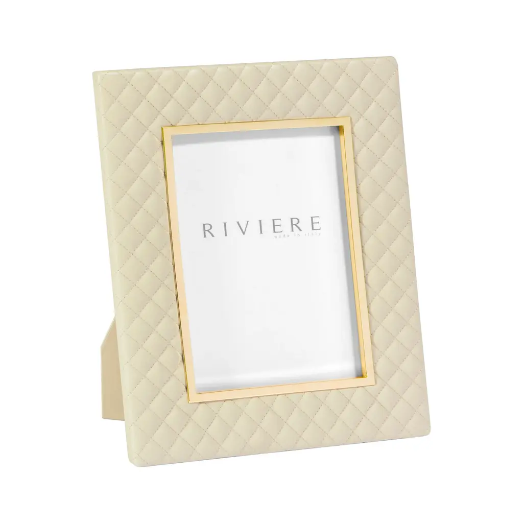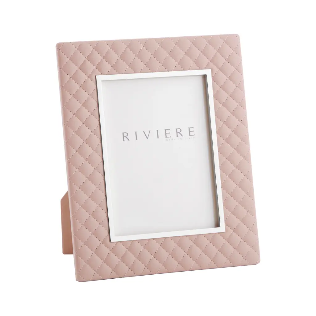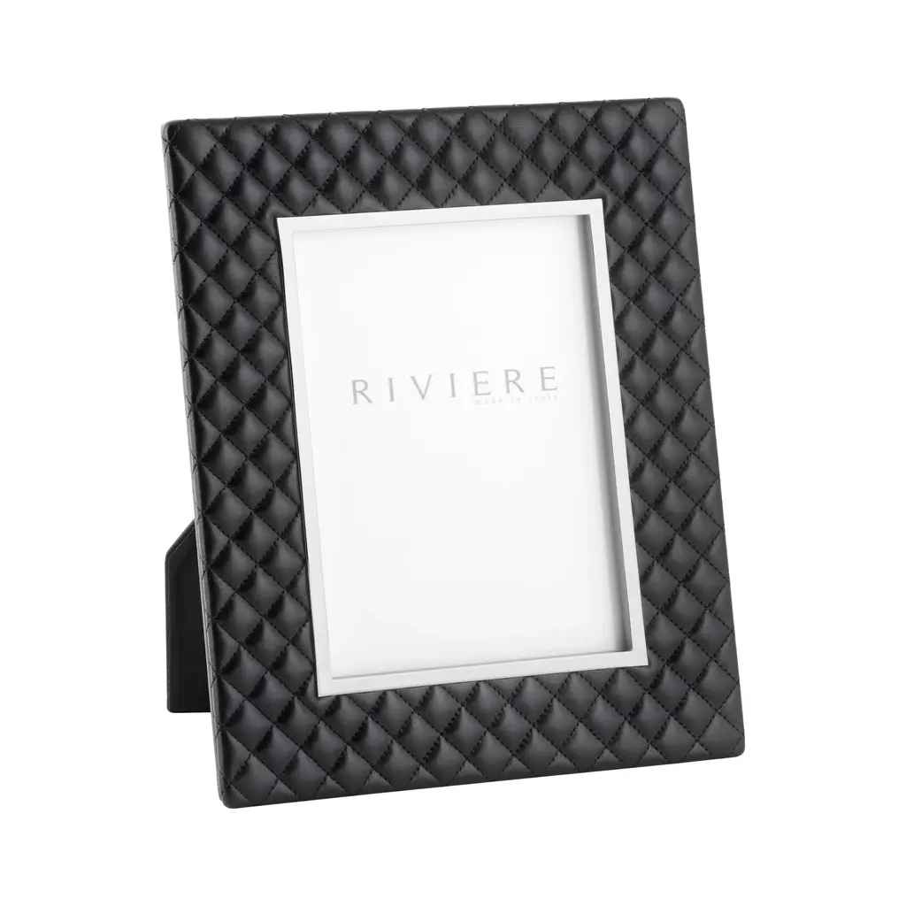 A touch of couture for your living room, the Giobagnara x Riviere Anita Picture Frame is a glamorous design from the Riviere collaboration. Expertly handcrafted in Italy, its surface is wrapped in soft, padded leather stitched into a timeless quilted diamond pattern. A sleek, polished metal trim elegantly outlines the frame, creating a brilliant contrast. A perfect fusion of high-fashion texture and refined detail, it transforms a personal memento into a true decorative jewel for any surface. Highlights: