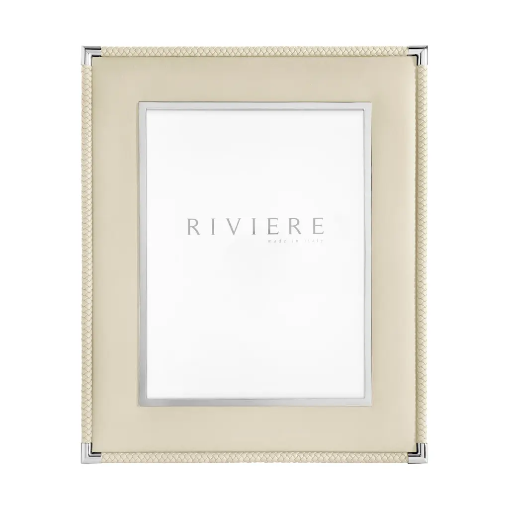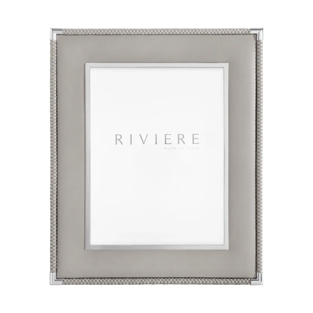 A rich composition of layered textures, the Thea No.2 Picture Frame is an exquisite design from the Giobagnara and Riviere collaboration. Expertly handcrafted in Italy, its smooth leather is elegantly flanked by two distinct borders: A brilliant metal inner trim and a hand-braided leather outer trim. This sophisticated layering creates a frame of unparalleled depth and richness, providing a stunning showcase for your cherished photographs. A fusion of heritage craft and contemporary glamour, it celebrates memories with true artistry. Highlights: