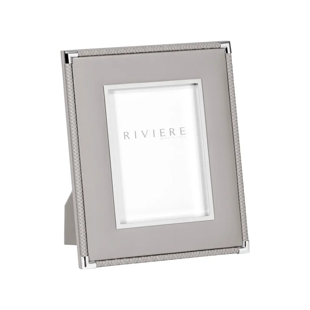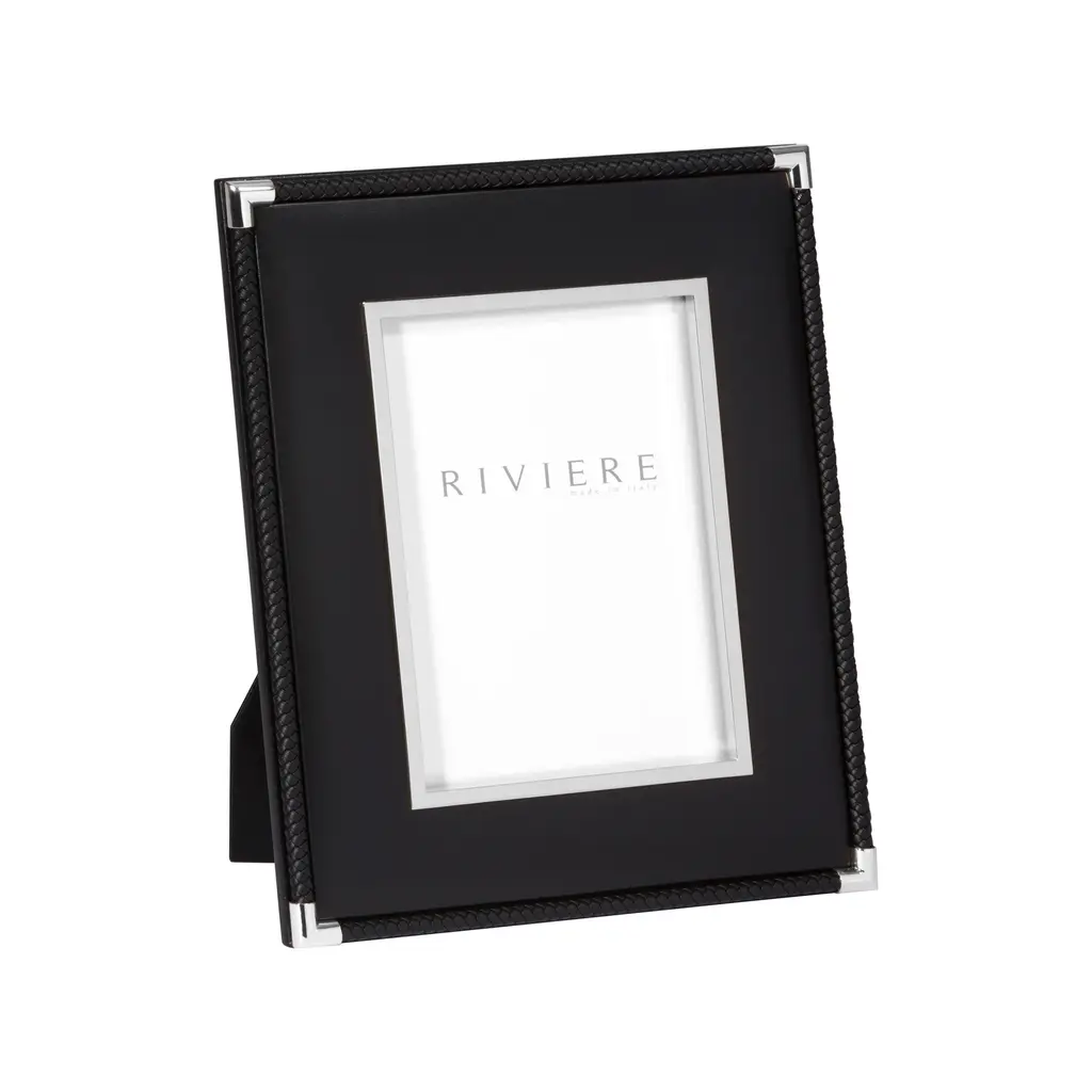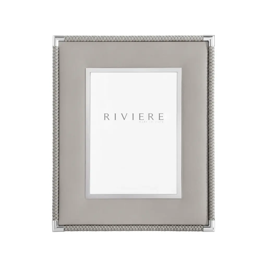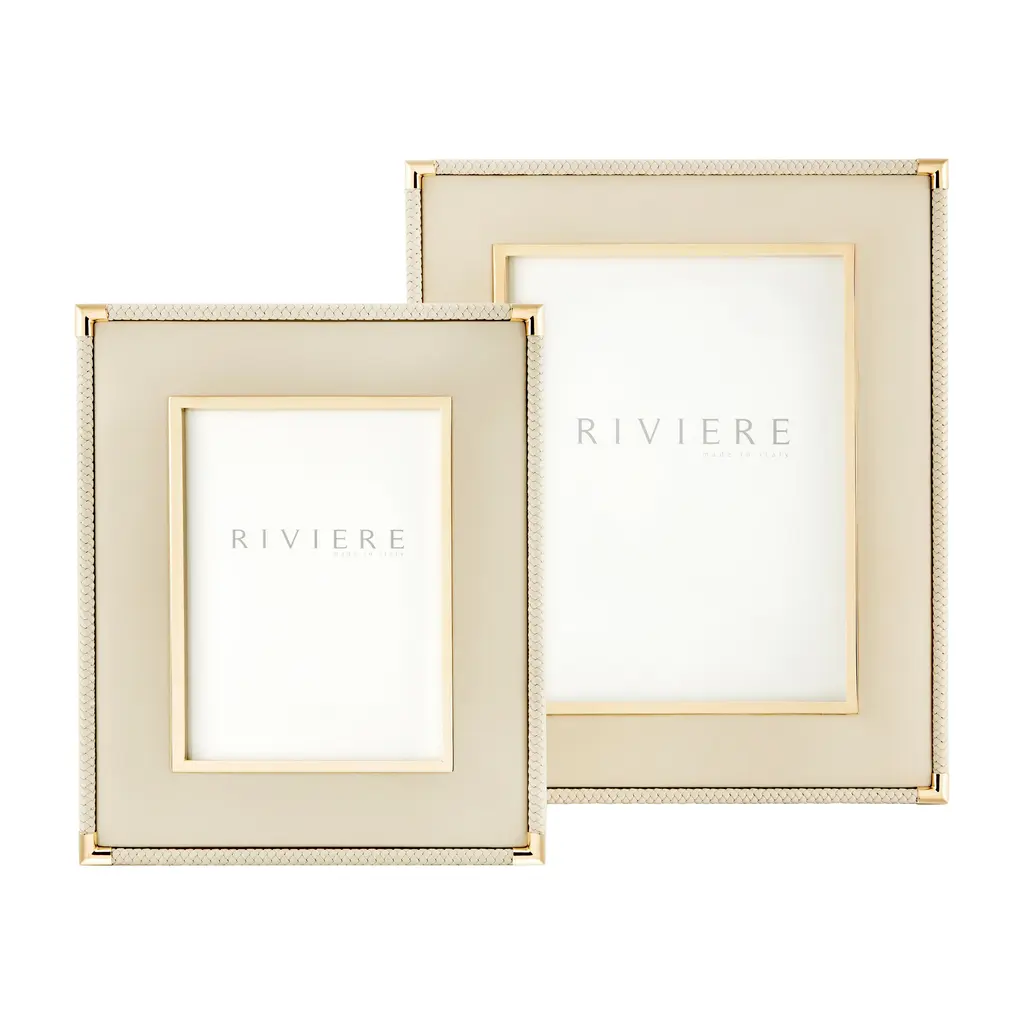 A rich composition of layered textures, the Thea No.2 Picture Frame is an exquisite design from the Giobagnara and Riviere collaboration. Expertly handcrafted in Italy, its smooth leather is elegantly flanked by two distinct borders: A brilliant metal inner trim and a hand-braided leather outer trim. This sophisticated layering creates a frame of unparalleled depth and richness, providing a stunning showcase for your cherished photographs. A fusion of heritage craft and contemporary glamour, it celebrates memories with true artistry. Highlights: