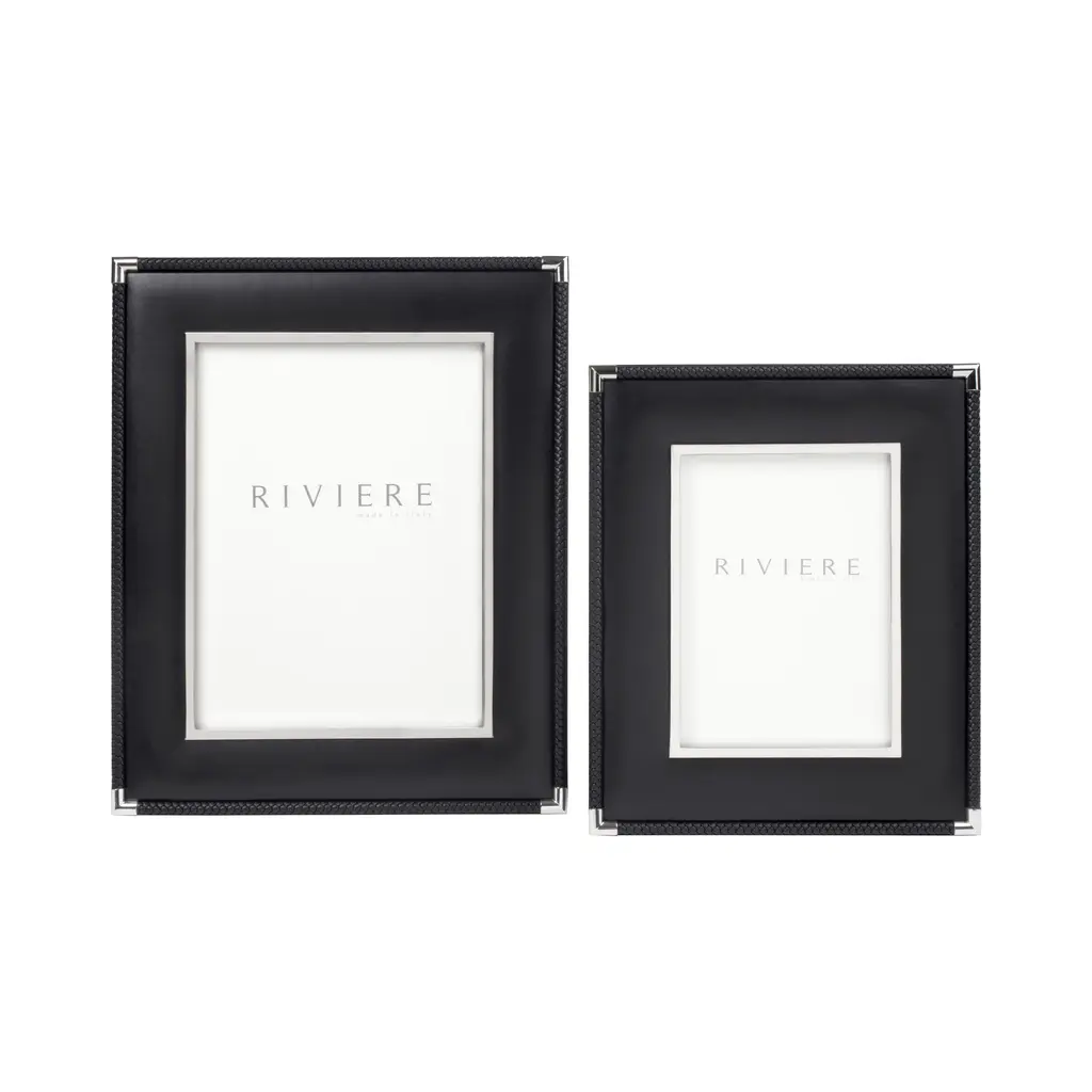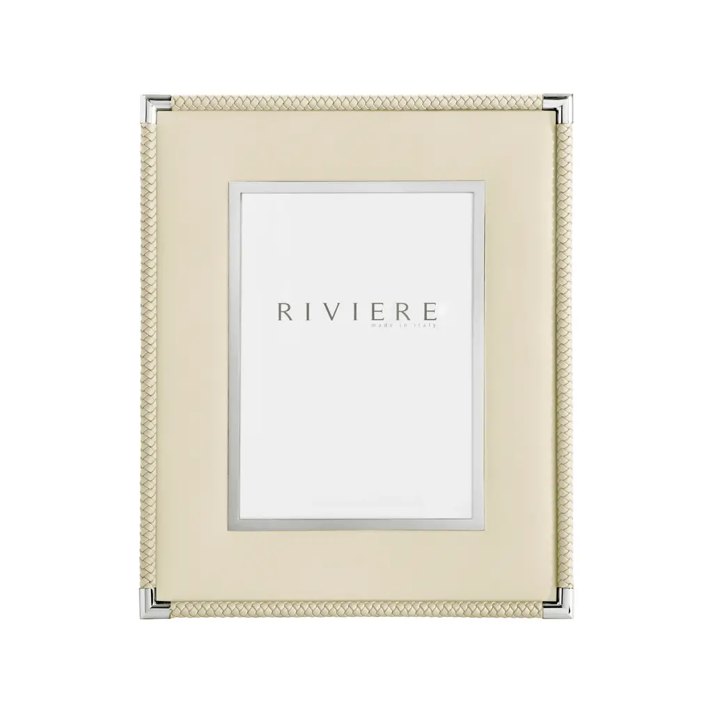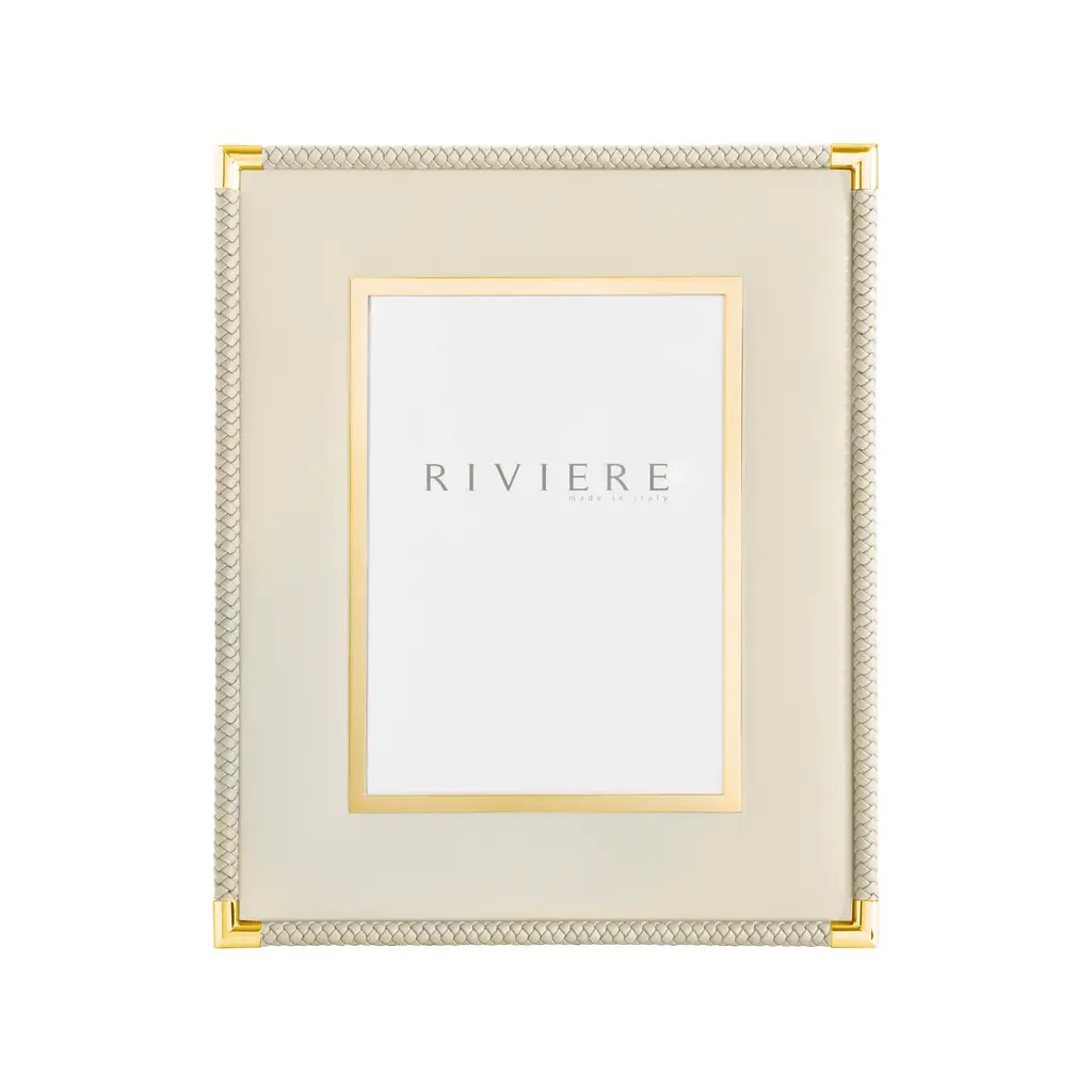 A rich composition of layered textures, the Thea No.2 Picture Frame is an exquisite design from the Giobagnara and Riviere collaboration. Expertly handcrafted in Italy, its smooth leather is elegantly flanked by two distinct borders: A brilliant metal inner trim and a hand-braided leather outer trim. This sophisticated layering creates a frame of unparalleled depth and richness, providing a stunning showcase for your cherished photographs. A fusion of heritage craft and contemporary glamour, it celebrates memories with true artistry. Highlights: