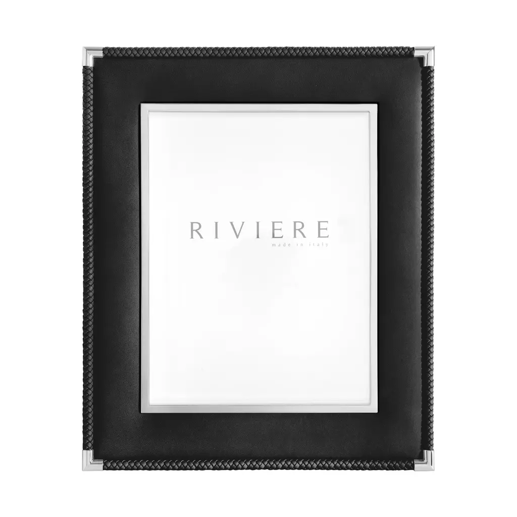 A rich composition of layered textures, the Thea No.2 Picture Frame is an exquisite design from the Giobagnara and Riviere collaboration. Expertly handcrafted in Italy, its smooth leather is elegantly flanked by two distinct borders: A brilliant metal inner trim and a hand-braided leather outer trim. This sophisticated layering creates a frame of unparalleled depth and richness, providing a stunning showcase for your cherished photographs. A fusion of heritage craft and contemporary glamour, it celebrates memories with true artistry. Highlights: