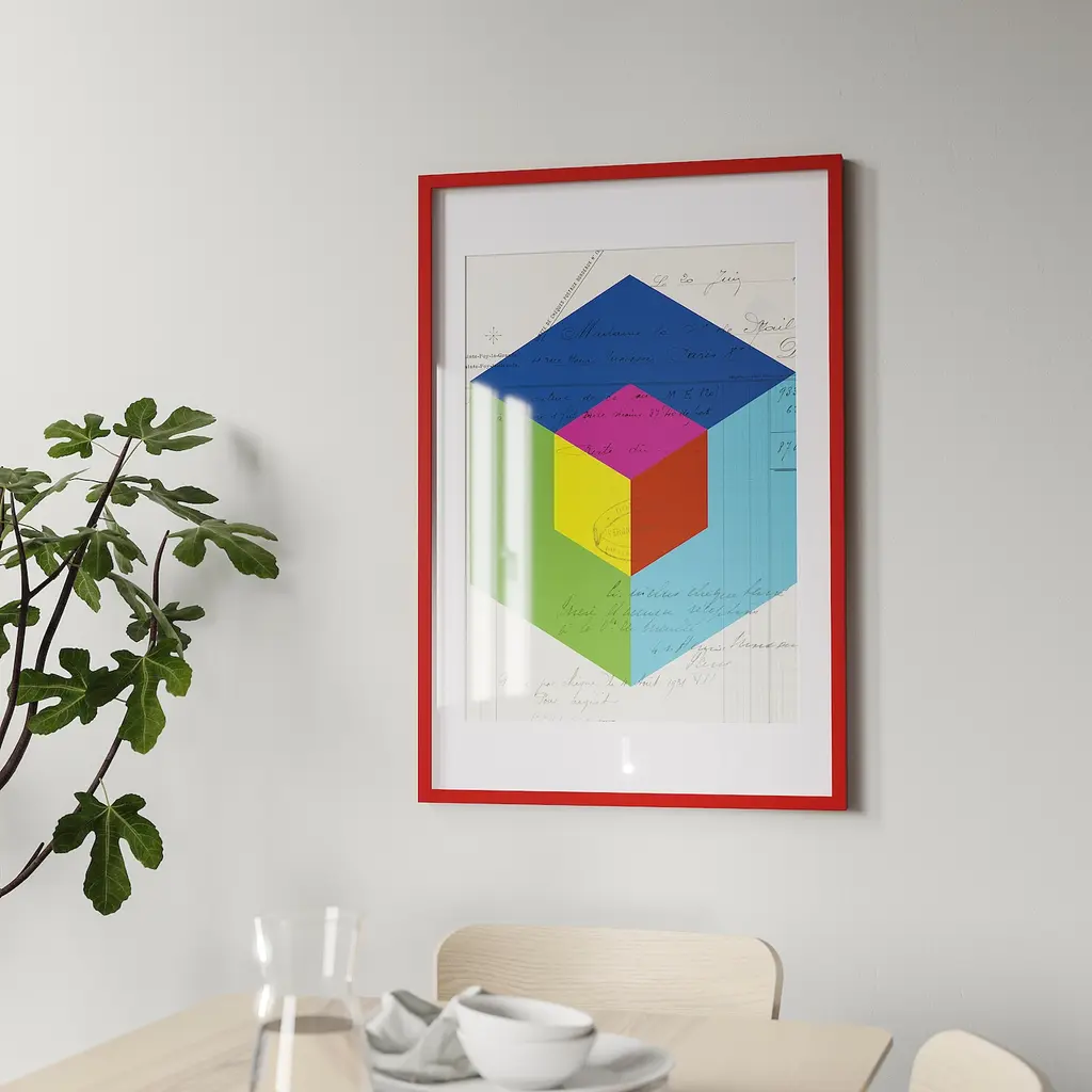 RÖDALM Frame - red 24x36 ". You can choose to frame your picture in different ways – close to the front or behind the inner frame to add depth. And with or without the included mount. With ALFTA adhesive hook you can easily hang this frame without nails or screws. Mount included.
