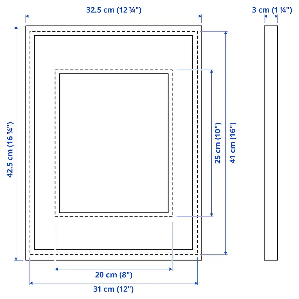 RÖDALM Frame - white 12x16 ". You can choose to frame your picture in different ways – close to the front or behind the inner frame to add depth. And with or without the included mount. With ALFTA adhesive hook you can easily hang this frame without nails or screws. Mount included.