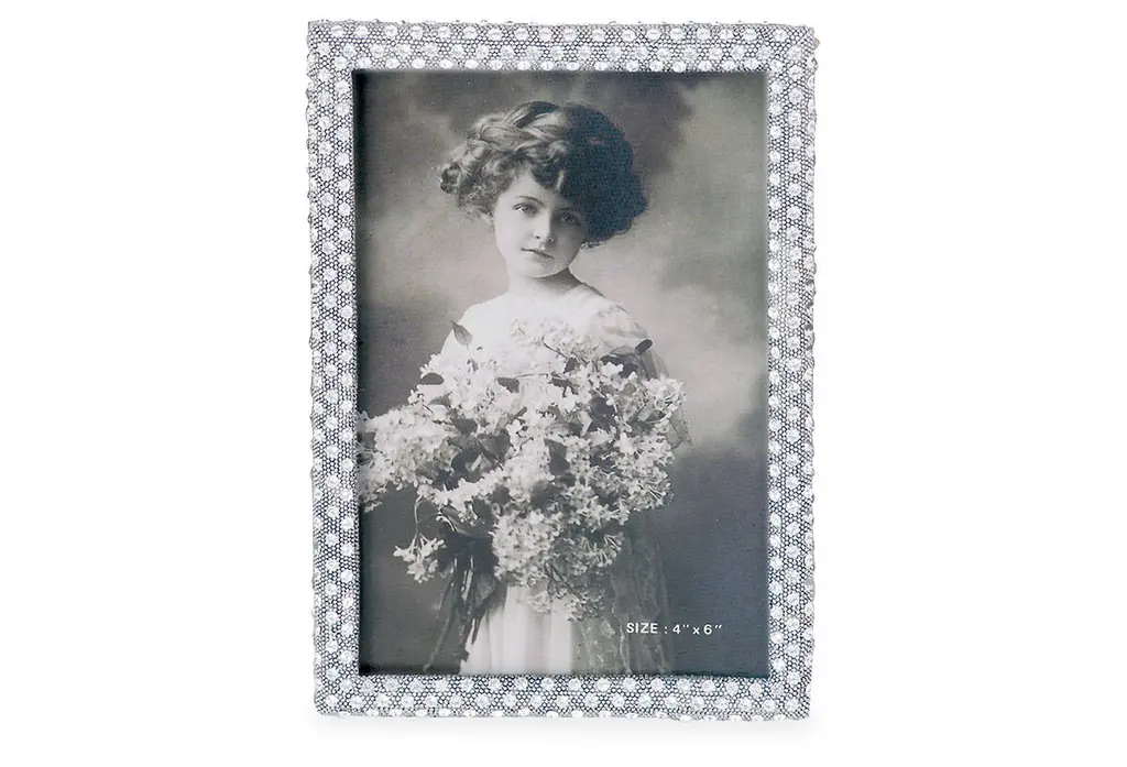 This 25th Anniversary photo frame is a perfect accent to your silver anniversary celebration! Simple yet elegant it enhances the beauty of your table when placed on it. Capture some beautiful memories and place them in this stunning picture frame. Product Features: White and gold wedding anniversary picture frame Frame is accented with a delicate cross-hatched pattern Tabletop frame comes ready to hang on a wall or easel for standing on table Braided porcelain rope pattern borders the 6.75" X 4.75" opening for your photo Recommended for indoor use only Holds a 5" x 7" photo Care Instruction: spot clean Dimensions: 11"H x 8.5"W x 3"D (when standing) Material(s): porcelain