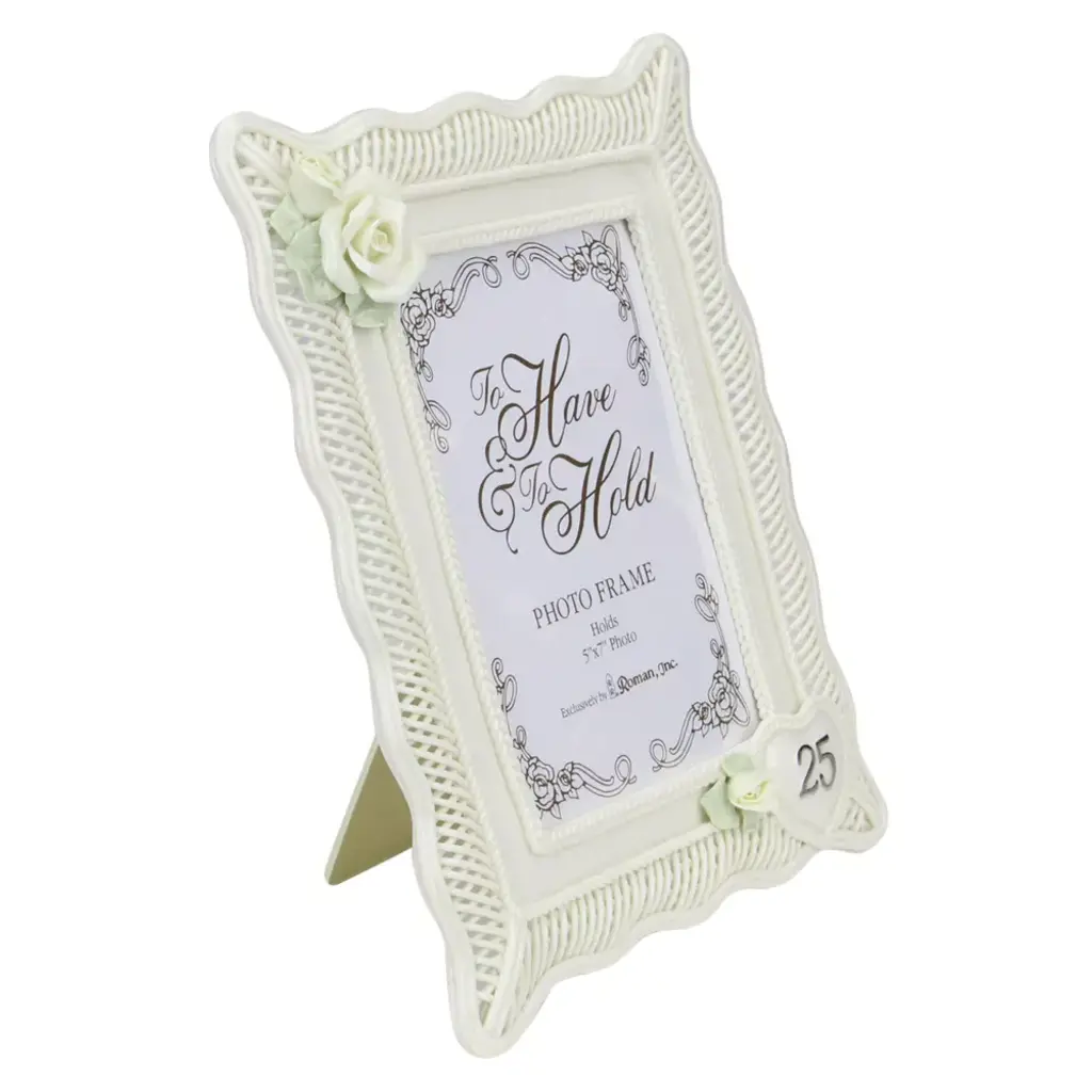 Roman Floral "25th Wedding Anniversary" Picture Frame - For 5" X 7" Photos - Cream