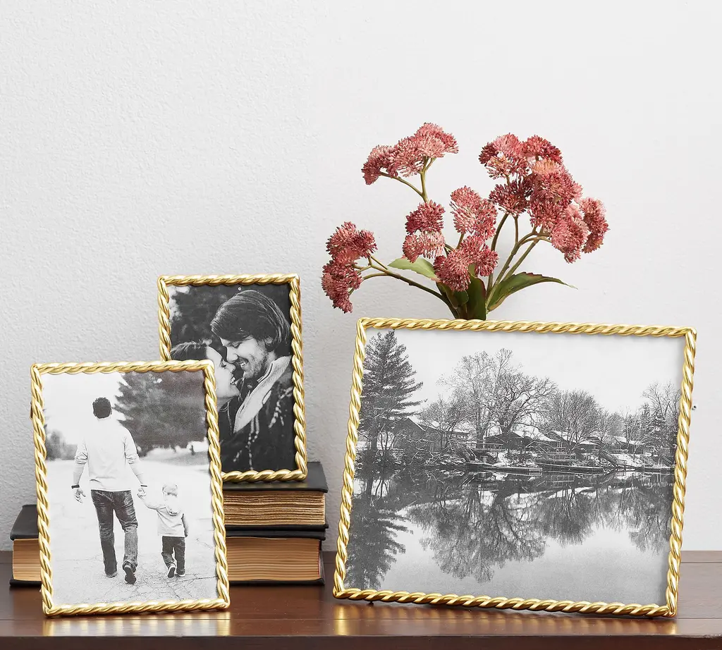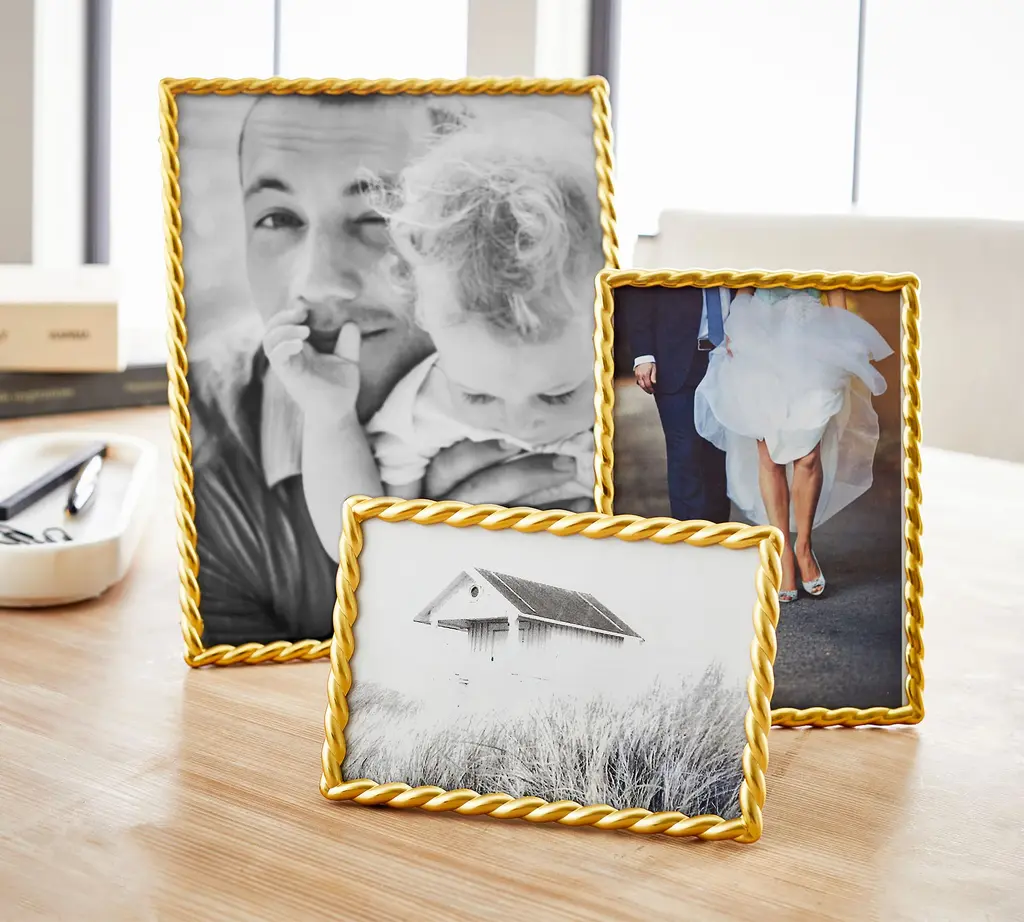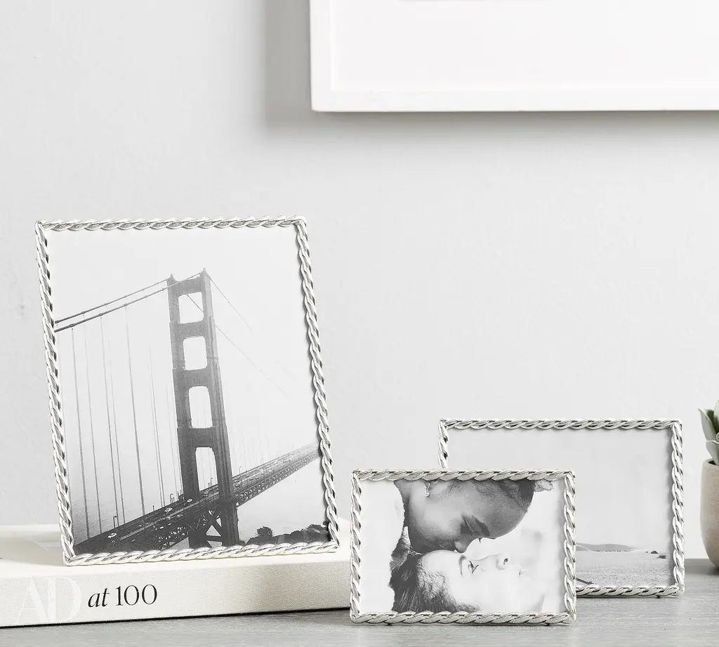 Add texture to your tabletop with these metal frames. Contoured to look like thick rope, it’s a nautical touch we love to mix and match with other frames for a well-curated vignette full of dimension.