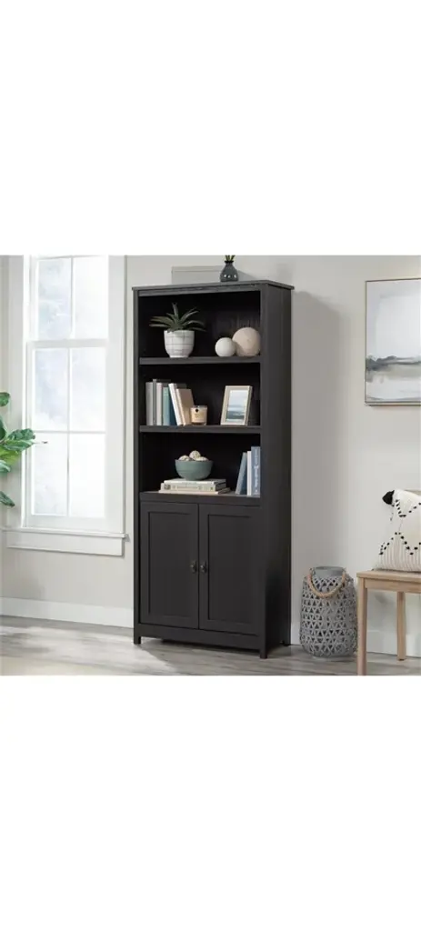 Looking for a way to add simplistic beauty to your home décor? Well, we've got just what you need. Update your home with the charming style of this library bookcase from the Cottage Road® collection. This 3-shelf bookcase features three large open shelves that provide you with the perfect amount of space to store and display an array of items like your favorite novels and organizing bins to decorative plants and picture frames. The two upper shelves are adjustable, providing you with the ability to move them to different heights to create flexible storage options for items of all shapes and sizes. This library bookcase with doors can fit all your stuff! Behind the framed doors is a hidden area that includes an adjustable shelf for storage of items you prefer not be seen lying around your home. Books, organizing bins, and more fit perfectly in this bookcase with doors. The versatile style and design make this library bookcase a great addition to any room in your home – the living room, your office, down the hallway or even in your bedroom. Finished in Raven Oak™ with Lintel Oak® accents, this beautiful bookcase is just what your home is missing.Features:Three adjustable shelves for customizable storage options.Hidden storage behind doors for books, bins, and more.Pre-attached moldings for quick and easy assemblyRaven Oak™ finish with Lintel Oak® accents.Material: Engineered WoodVersatile addition to any room.Specifications:Product Dimensions: 71.5" H x 29.29" W x 13.98" DProduct Weight: 84 lbsWeight Capacity: 40 lbs