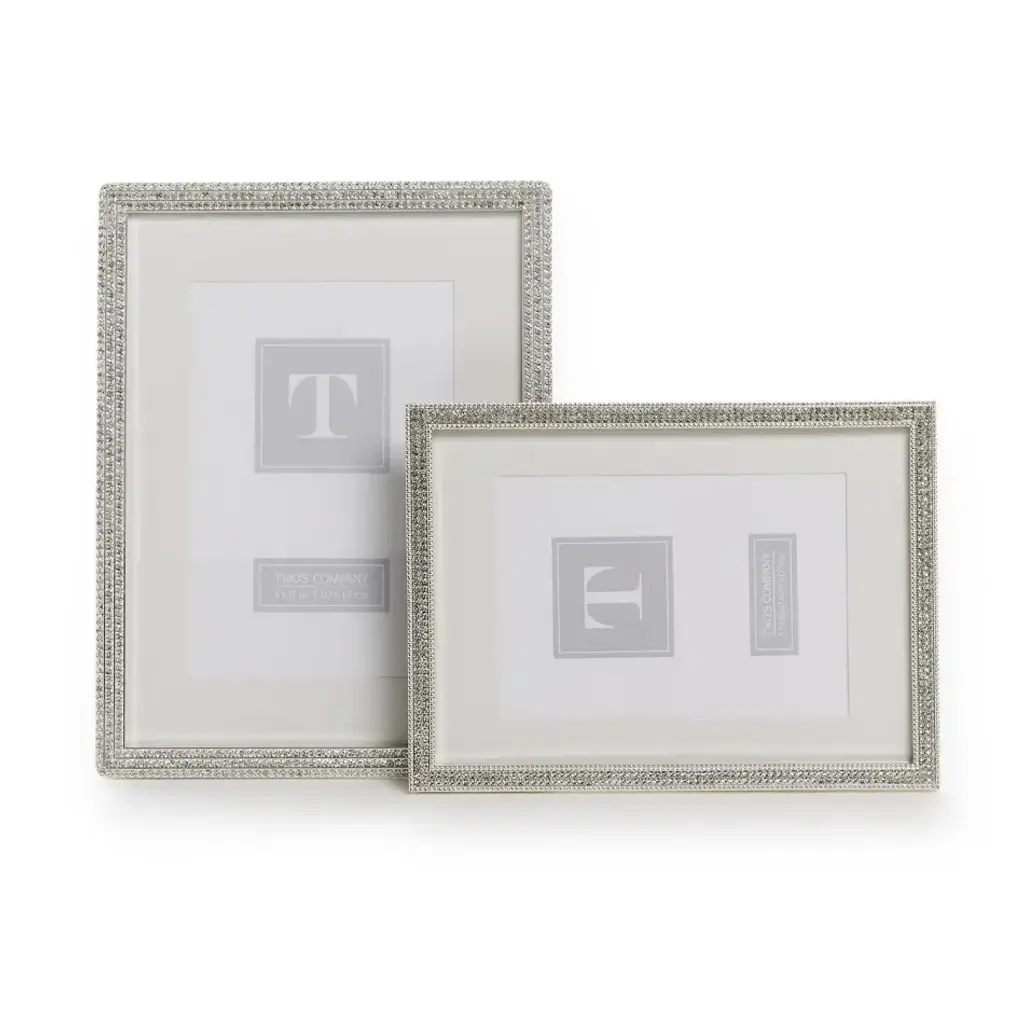 Elevate your cherished memories with our Set of 2 Crystal Photo Frames. Crafted with a harmonious blend of metal and rhinestone, these frames offer both elegance and longevity.