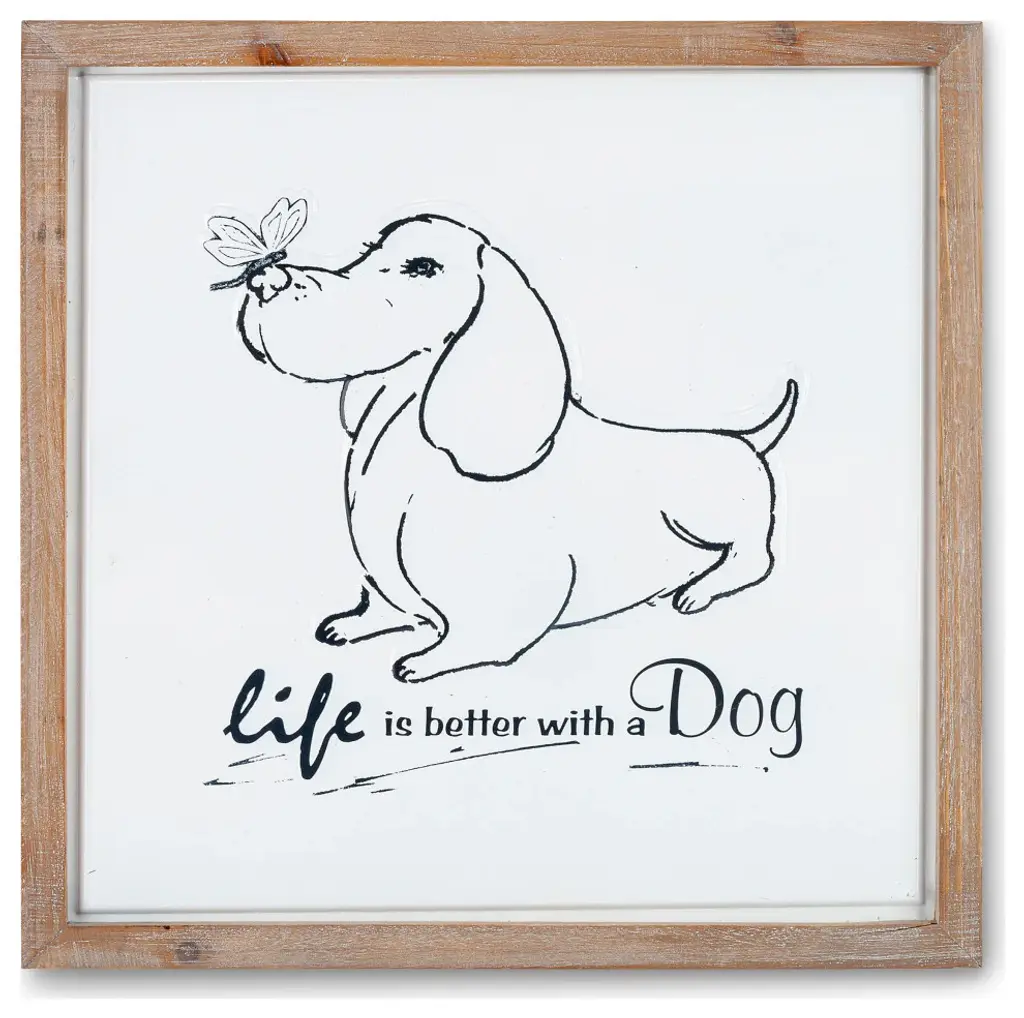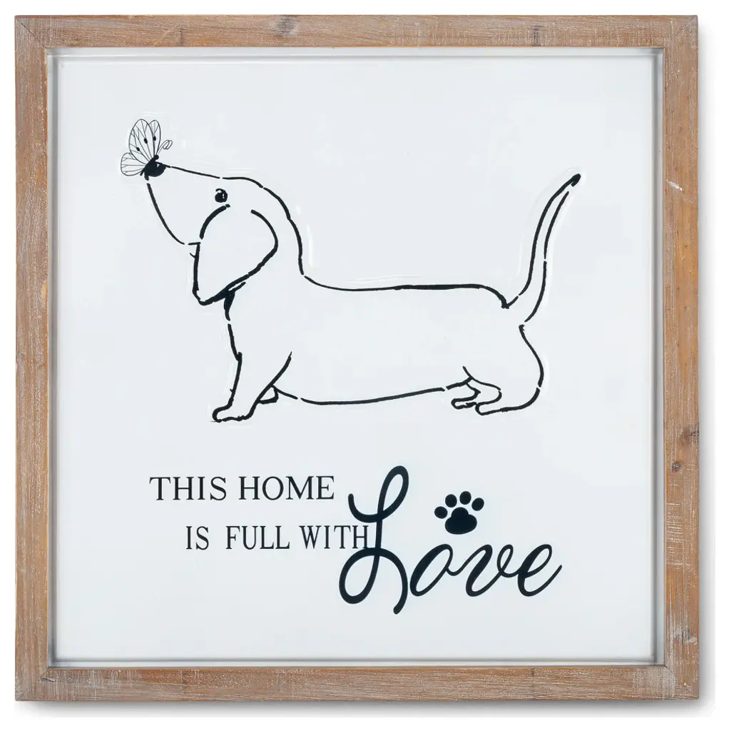 Show the world how much you love your furry best friend with this set of three adorable metal wall signs. With one proclaiming "This home is full with love", another stating "Your loyal companion" and the last reminding you that "life is better with a dog", you are sure to make a statement to all who enter your home. Each sign measures 16.14-inches long by 16.14-inches tall, and is made of metal and wood