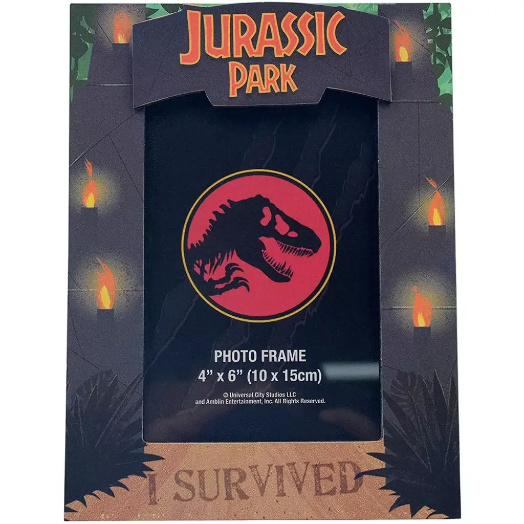 Silver Buffalo Jurassic Park "I Survived" Die-cut Photo Frame | Holds 4 X 6 Inch Photos
