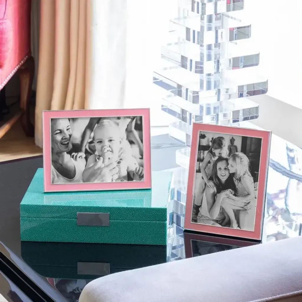 This exclusive Addison Ross designed coral enamel and silver 15mm frame sets off both colour and black and white photos beautifully. Group them to make an impressive statement. Able to stand both Landscape and Portrait.