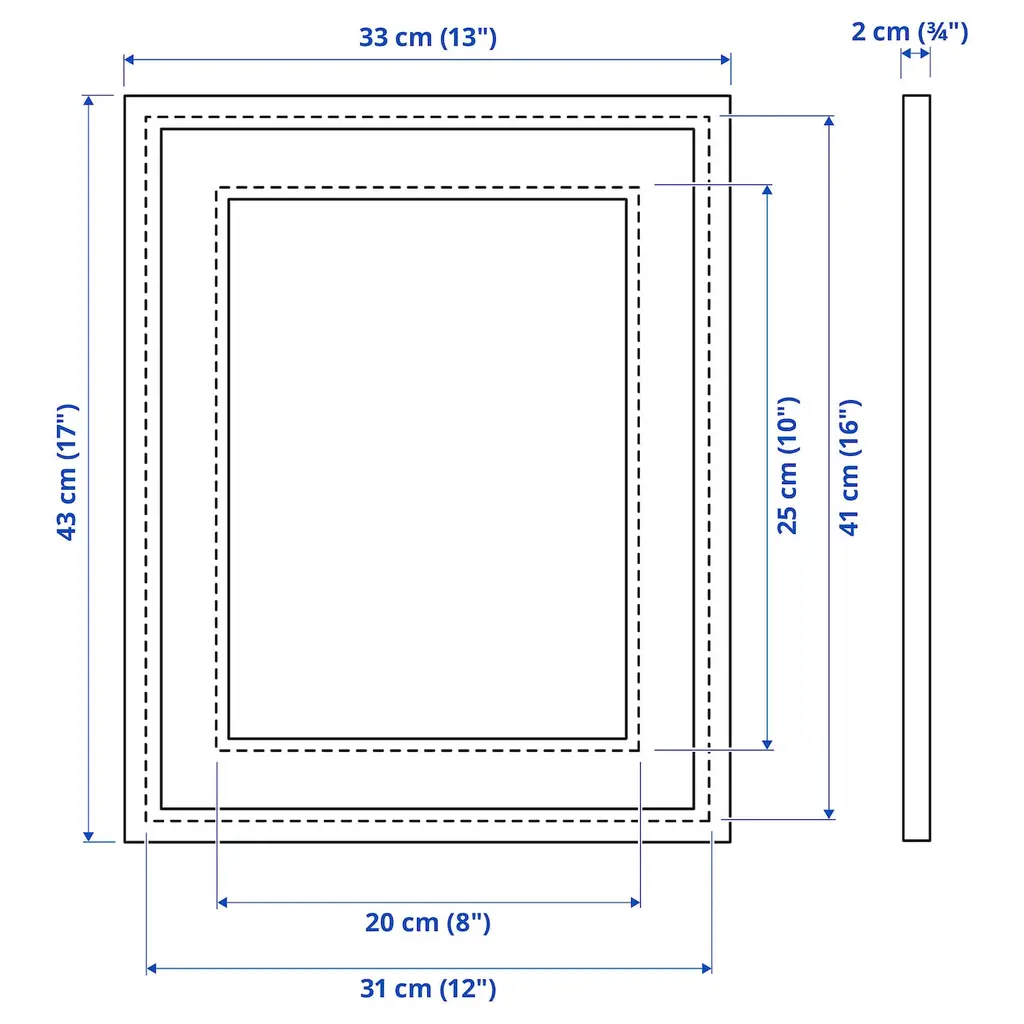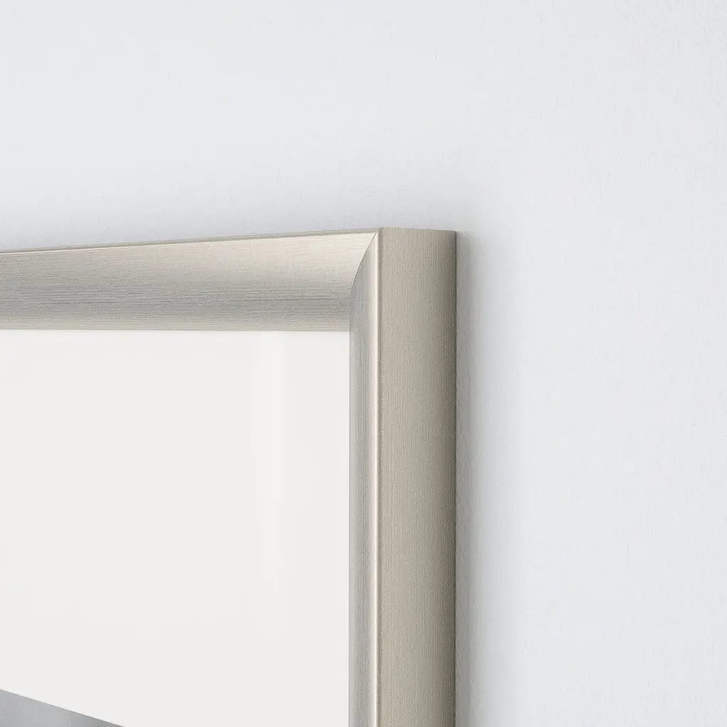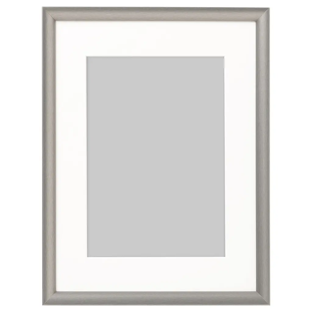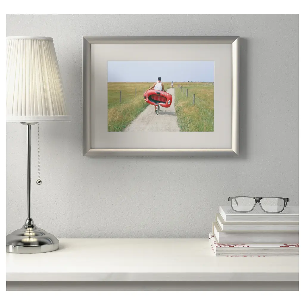 SILVERHÖJDEN Frame - silver color 12x16 ". This frame is ideal to use with ALFTA adhesive hook. With the hook you can easily hang the frame without nails or screws and decorate your walls with pictures. Can be hung horizontally or vertically to fit in the space available. Mat included.