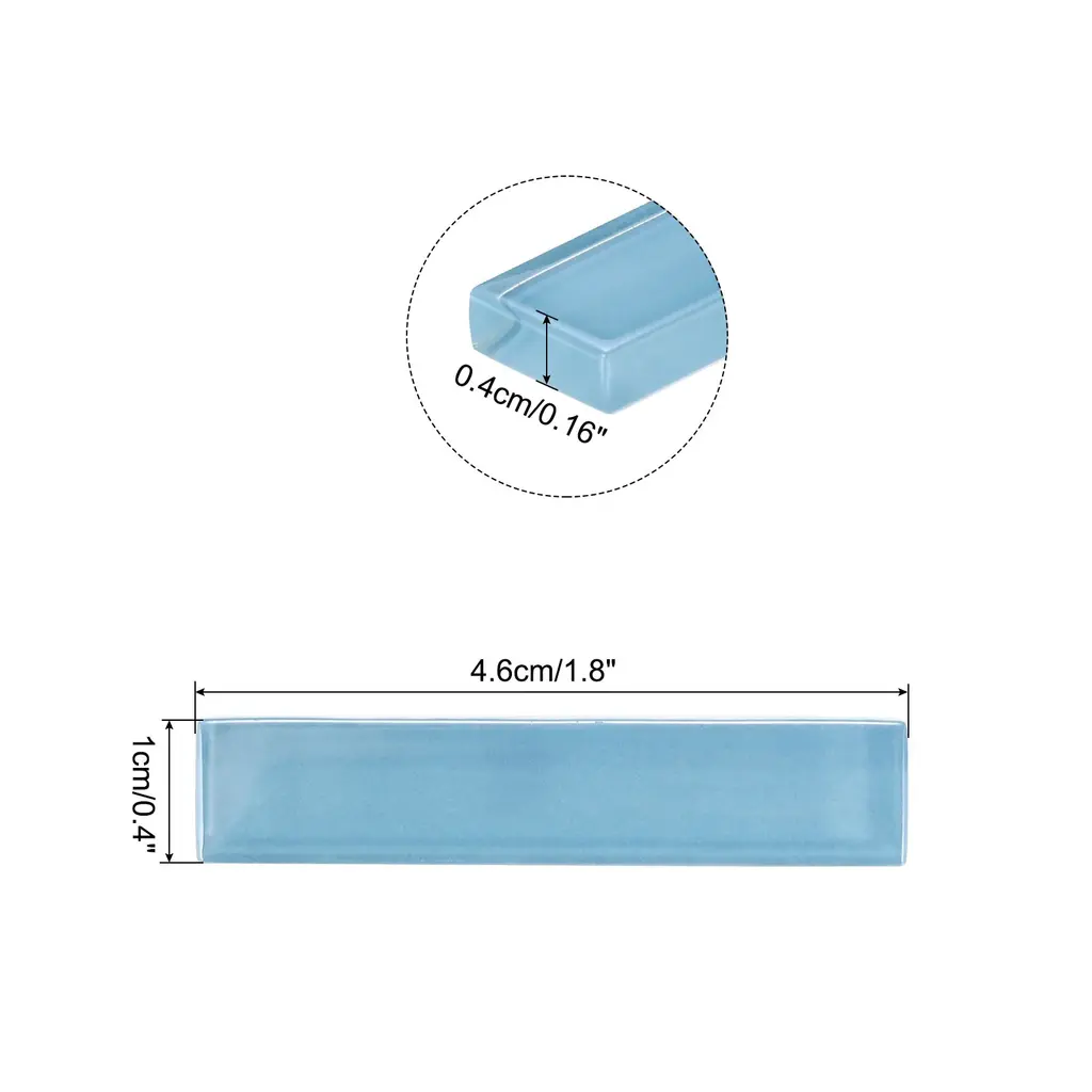 What is this?This stained crystal glass mosaic bulk includes a variety of colors, as well as glass mosaics of different sizes and processes, perfect for DIY projects such as coasters, picture frames, ceramic vases, garden decorations, TV walls, etc.What will I get?Color: Sky Blue;Weight: 200g(0.44lbs)/Set;Finish Type: Polished;Installation Type: Glue Down(Not Included Here!);Length: 1.8 Inch;Width: 0.4Inch;Thickness: 0.16Inch;In the package of: 1 Set x 200g Stained crystal glass mosaic, totally 200g(0.44lbs)Are there any advantages of the product?Durable and easy to clean:Mosaic tiles for craft are versatile and elegant, adding beauty to any DIY project. Their smooth surface makes them easy to clean and maintain, while their resistance to fading and moisture-proof makes them cost-effective and durable.How to use it?Prepare the surface by ensuring it's clean, dry, and flat. Apply suitable adhesive and press the mosaic tiles firmly in place. Leave the adhesive to dry for 24 hours before grouting the mosaic tiles. Finally, clean off any excess grout with a damp sponge.What should I notice?Wear protective gloves when handling mosaic tiles to prevent hurt from edges. Avoid exposing the mosaic tiles to extreme temperatures, direct sunlight, or harsh chemicals. Follow the manufacturer's instructions carefully for optimal results.