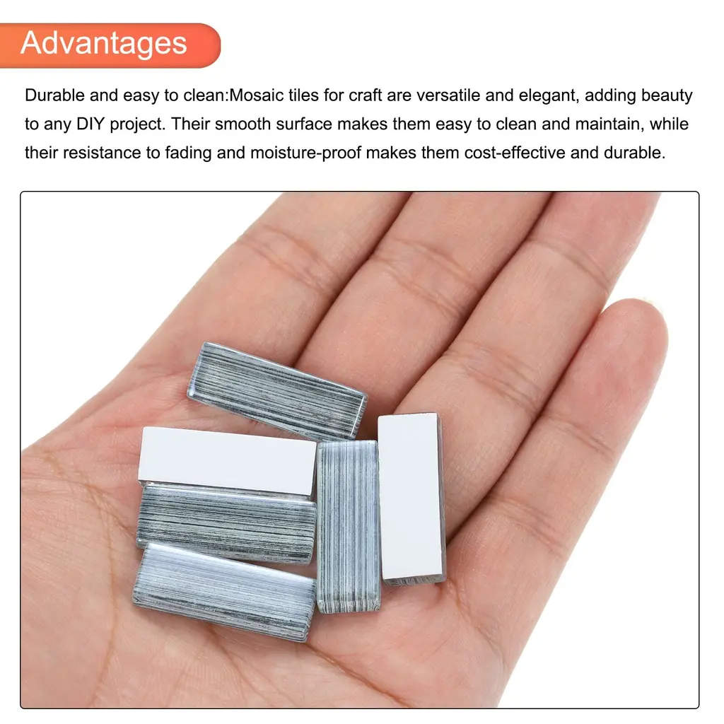 What is this?This stained crystal glass mosaic bulk includes a variety of colors, as well as glass mosaics of different sizes and processes, perfect for DIY projects such as coasters, picture frames, ceramic vases, garden decorations, TV walls, etc.What will I get?Color: Gray;Weight: 200g(0.44lbs)/Set;Finish Type: Polished;Installation Type: Glue Down(Not Included Here!);Length: 1 Inch;Width: 0.4Inch;Thickness: 0.16Inch;In the package of: 1 Set x 200g Stained crystal glass mosaic, totally 200g(0.44lbs)Are there any advantages of the product?Durable and easy to clean:Mosaic tiles for craft are versatile and elegant, adding beauty to any DIY project. Their smooth surface makes them easy to clean and maintain, while their resistance to fading and moisture-proof makes them cost-effective and durable.How to use it?Prepare the surface by ensuring it's clean, dry, and flat. Apply suitable adhesive and press the mosaic tiles firmly in place. Leave the adhesive to dry for 24 hours before grouting the mosaic tiles. Finally, clean off any excess grout with a damp sponge.What should I notice?Wear protective gloves when handling mosaic tiles to prevent hurt from edges. Avoid exposing the mosaic tiles to extreme temperatures, direct sunlight, or harsh chemicals. Follow the manufacturer's instructions carefully for optimal results.