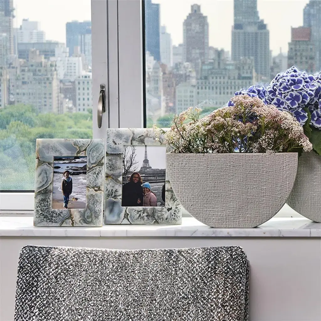 Crafted from white quartz, this set of photo frames will add a unique, artisan touch to your photos. As with natural stone, each piece will have variances in color and pattern: no two will be exactly alike.