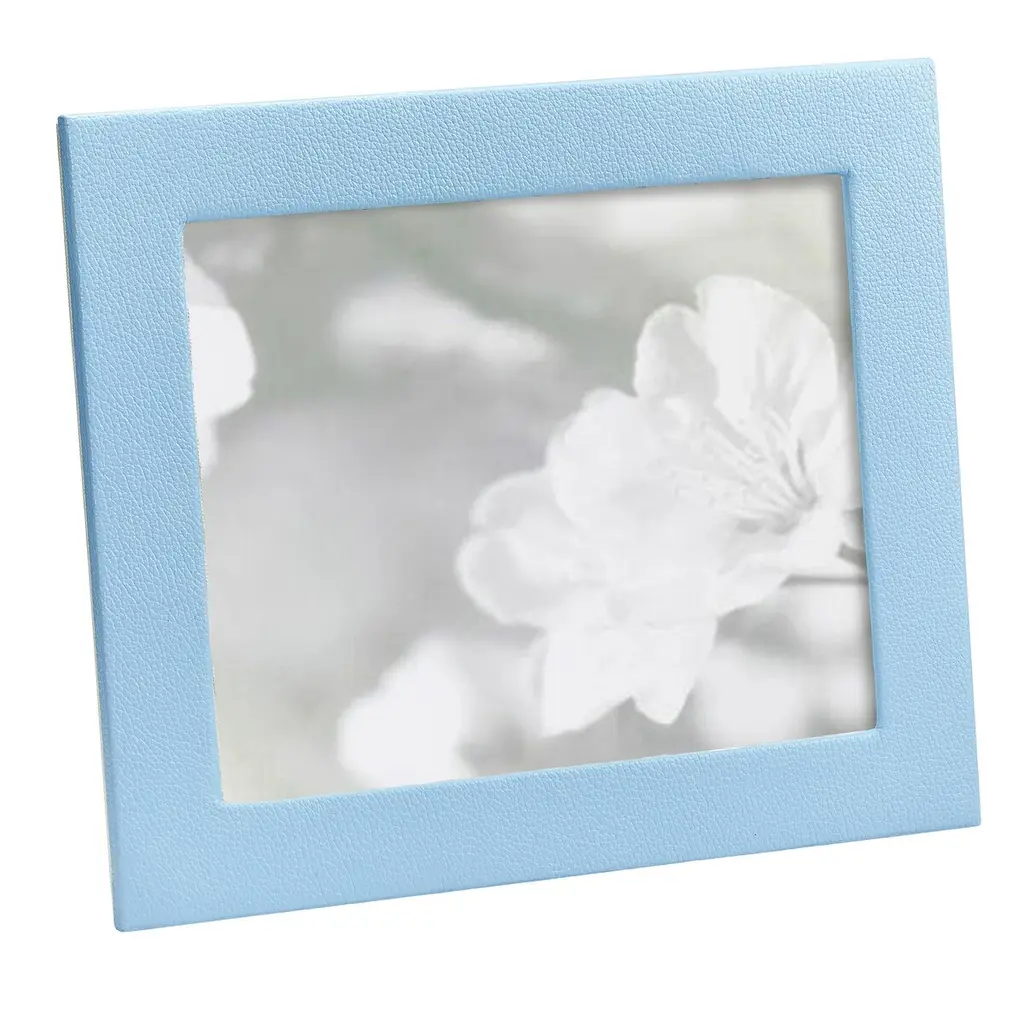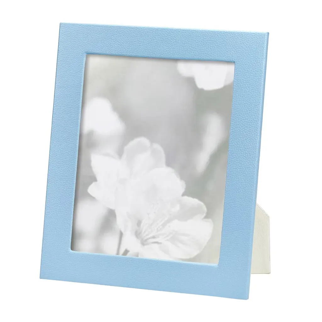 0 This rich leather frame beautifully accents your favorite photo. Handcrafted frames, wrapped in leather on both sides, with a sturdy metal easel. Convenient rear drop-down door for easy and frequent access to photos. Overall Size: 6" x 8" Opening: 4" x 6"